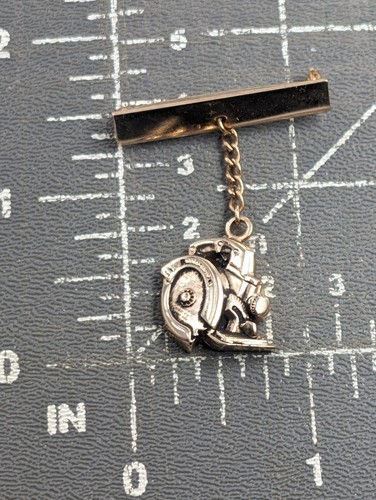 VTG Circular Saw Bar Pin Dangle Construction Tool Jewelry Tradesman Gold Tone