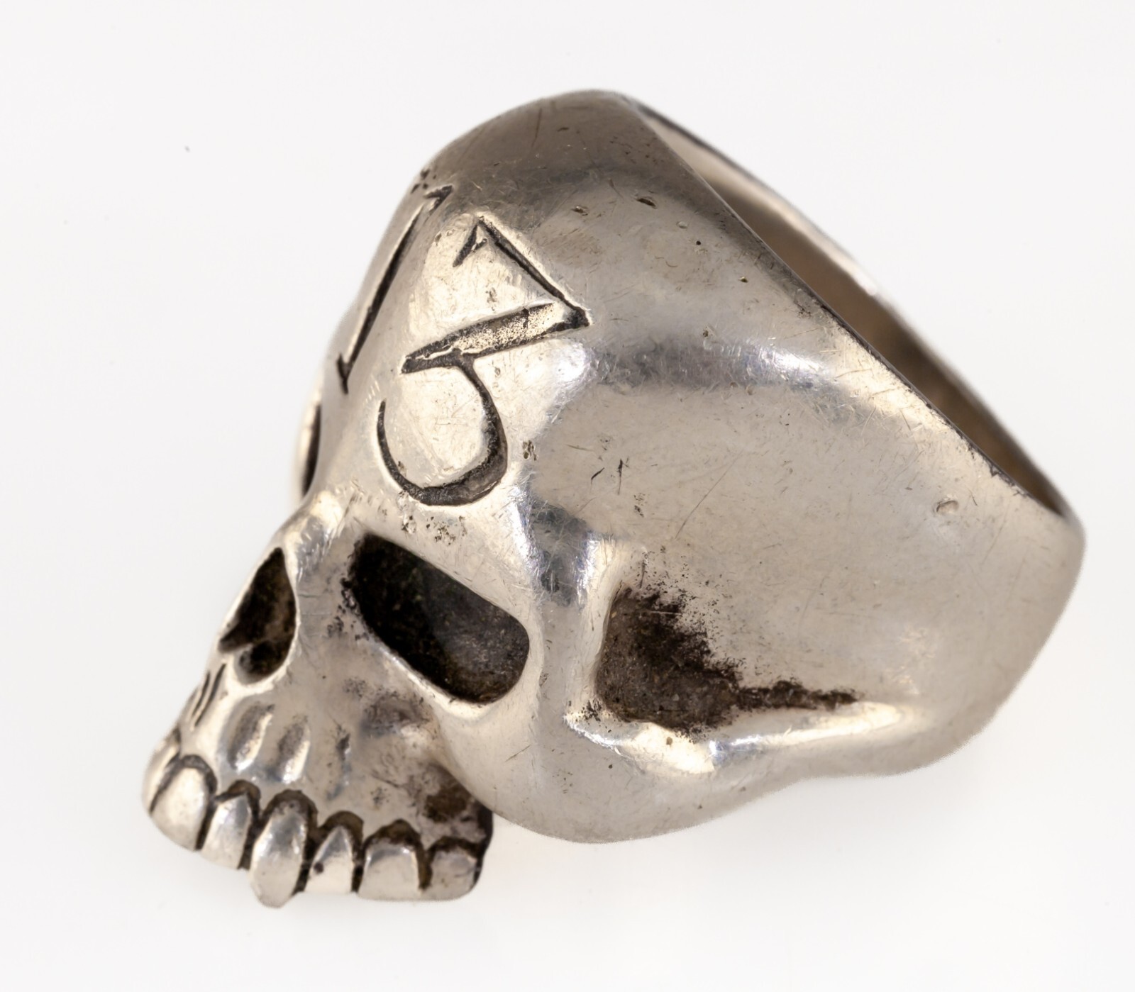 La grande bague de motard a crane en argent sterling sterling taille 9 "13"