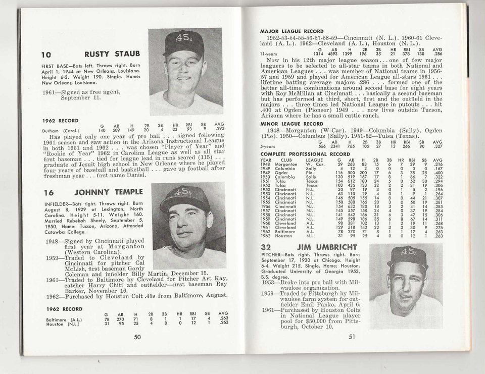 1963 Houston Colt .45s Press Radio Television Media Guide 76 Page Baseball Guide