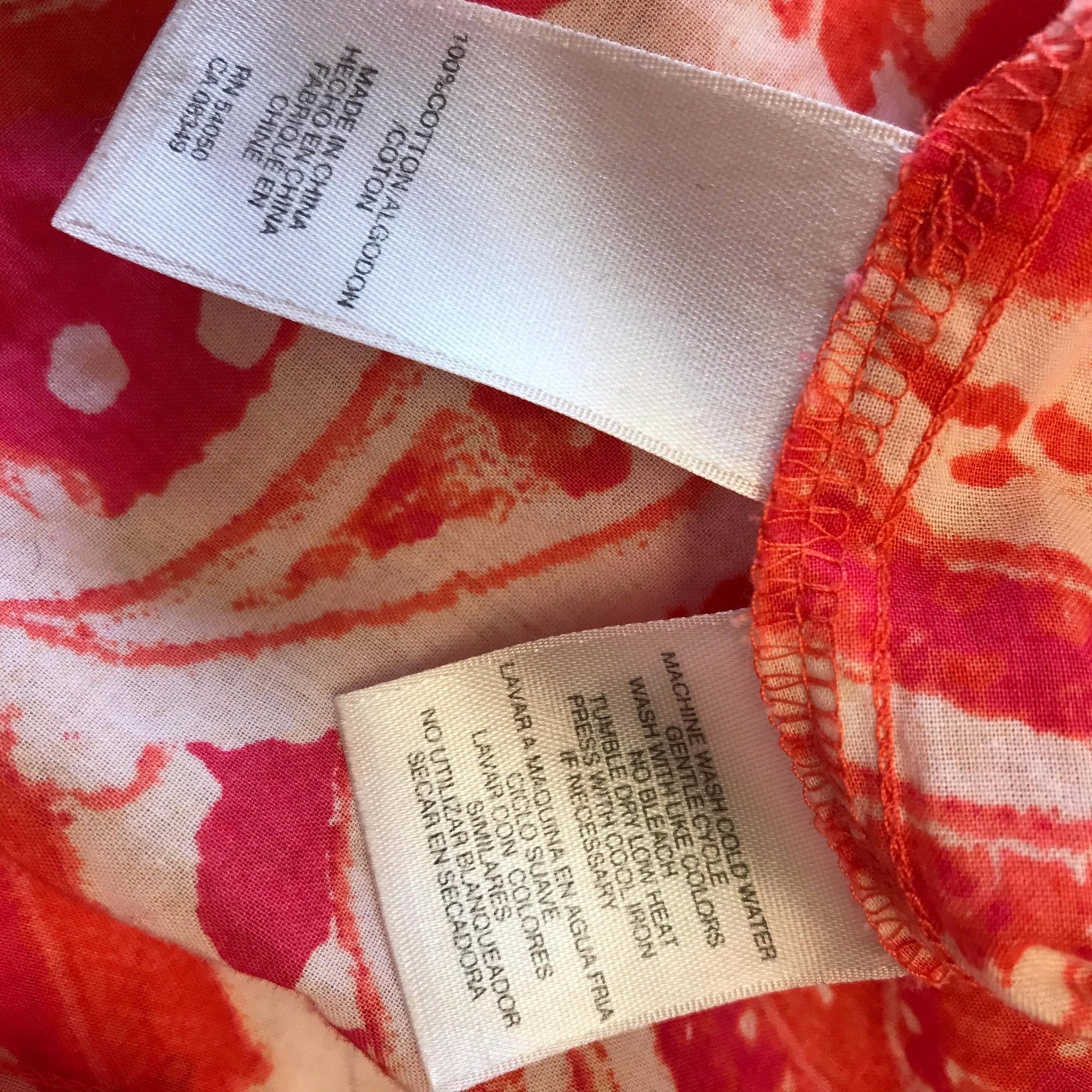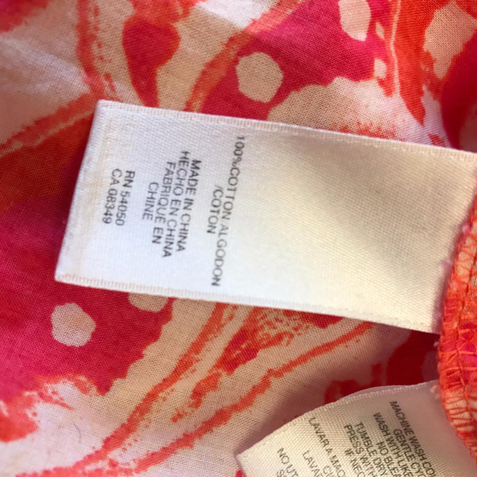 Jones New York Womens Top Small Button Down Blouse Red Pink Print Tie Blouse