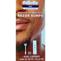 Gillette Mens SkinGuard Razor Bumps: Razor, 3 Cartridges, Shave Gel 5pc Set NIB