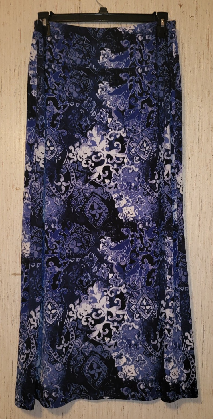 WOMENS Christopher & Banks BLUES & WHITE ABSTRACT PRINT LONG KNIT SKIRT SIZE XL