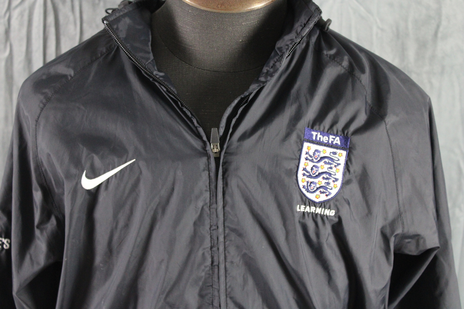 Up for sale is a Team England jacket. It has a black base colour. The front of the jacket has the Nike Swoosh and FA Team England Learning logo stitiched in. The left sleeve has the St George's Park logo stitiched in. What a great jacket do not miss out on it.