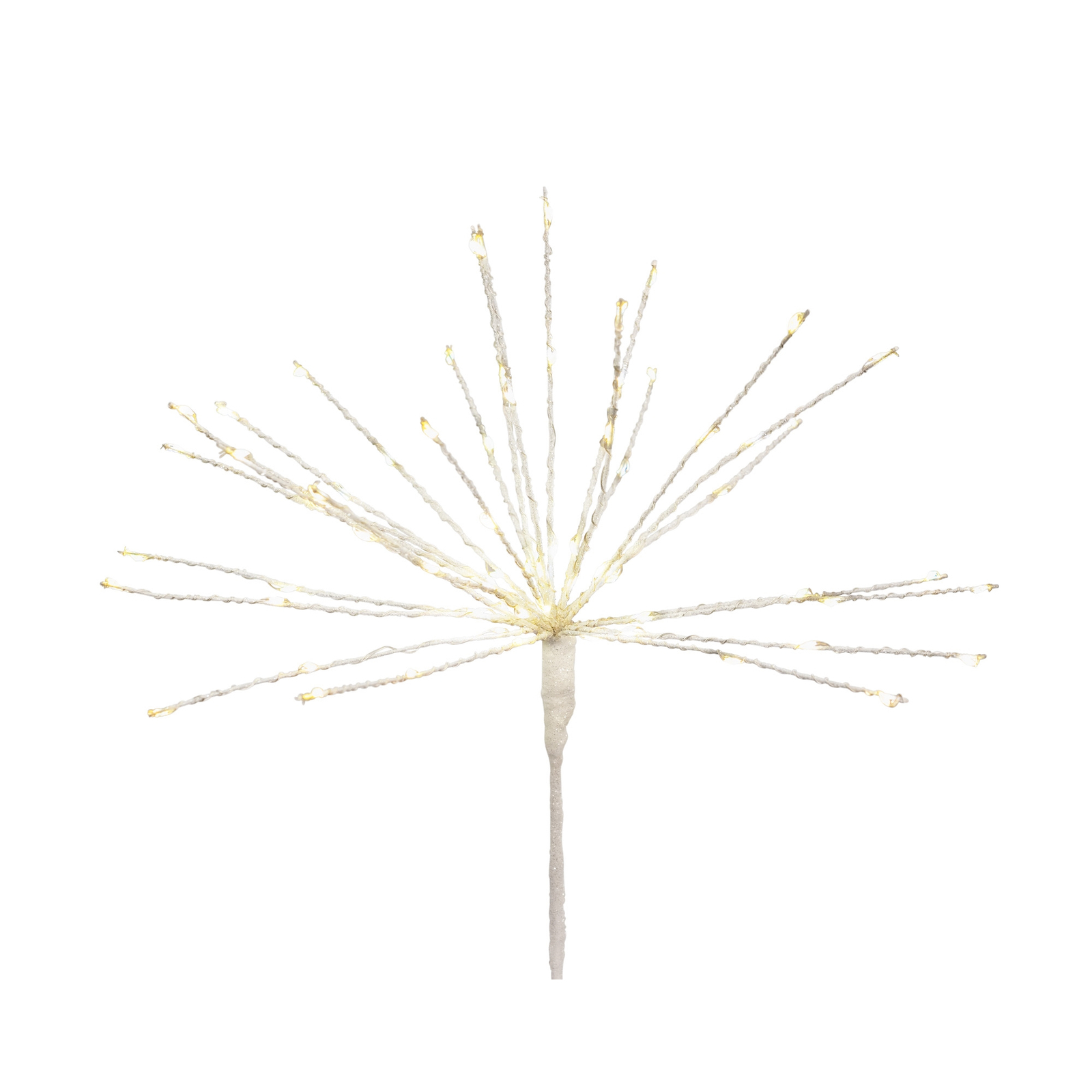 Add a dazzling touch to your holiday tree with the LED Starburst Tree Topper. This set of two pieces features 75 mini white LED lights, offering a brilliant glow that brings festive cheer to your home. Standing 23.5" tall and 15.5" wide, it s the perfect finishing accent to elevate your Christmas tree decor. With an easy-to-use UL plug and a 63" cord, setup is a breeze. Crafted from durable plastic, this topper is designed for indoor use, ensuring a magical holiday display year after year.