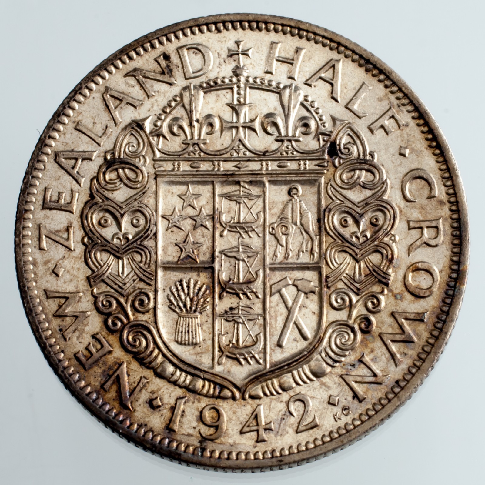 1942 Nouvelle-Zelande 1/2 Crown Km # 11 XF Condition