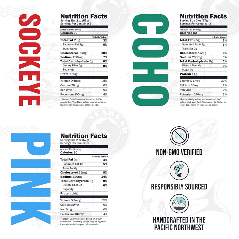 - Premium Wild Alaskan Smoked Sockeye, Coho, and Pink Salmon Trio - 18Oz Box