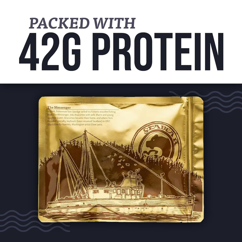 Each fillet has been sealed in our Gold Seal Pouch, and then gently cooked in its own juices. This preserves the salmon naturally, so it's shelf stable for up to 4 years or until the pouch is opened.
