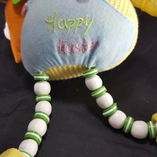 White Easter Bunny Rabbit Shelf Sitter Yellow Shirt Plush Stuffed Button Legs