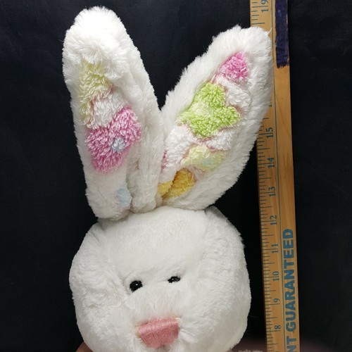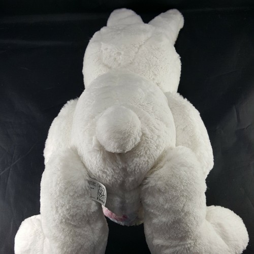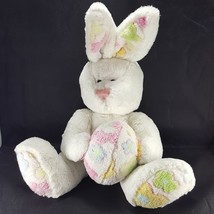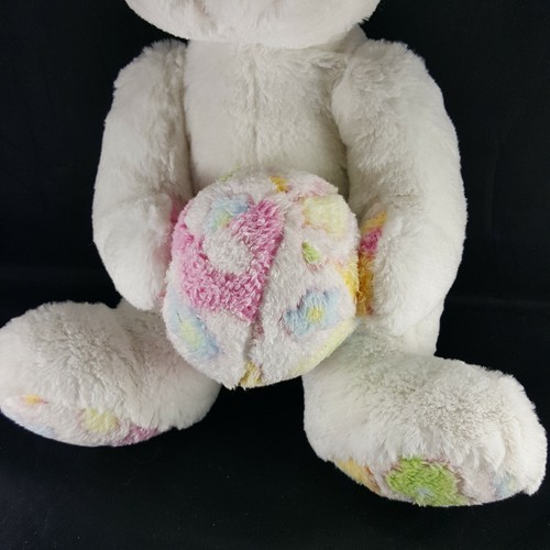 White Easter Bunny Rabbit Holding Egg Floral Ears Feet Plush Stuffed 19" Long