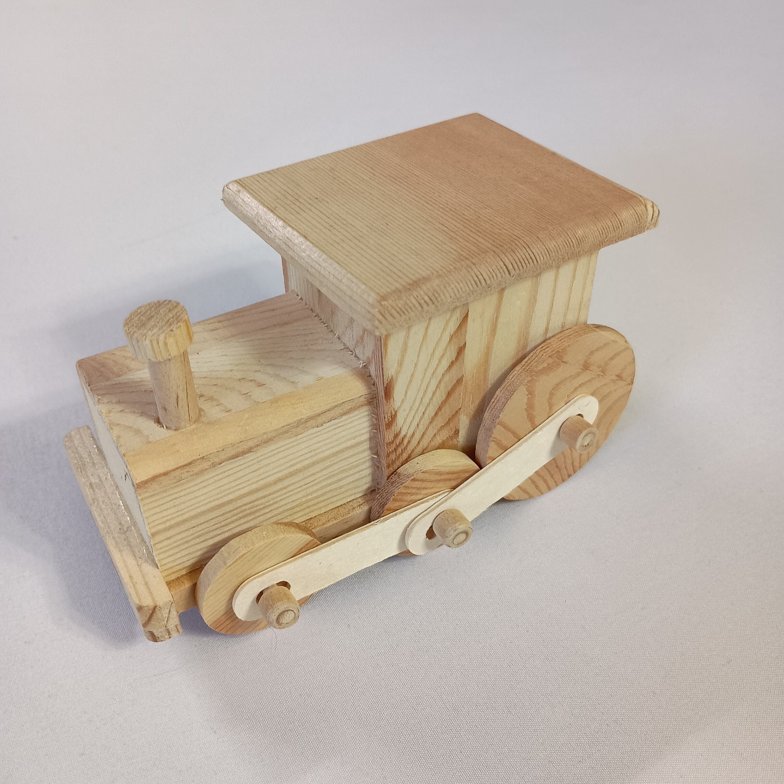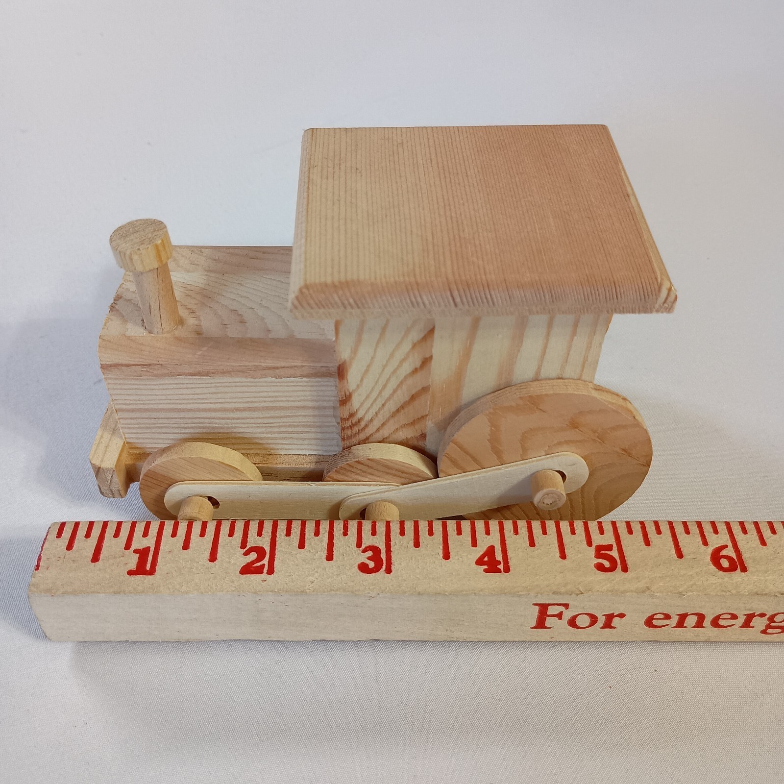 This product is wooden blocks in the shape of train specifically designed for crafting purposes and not for rolling. Made by Hobby Lobby in 2014, the blocks are crafted from wood and are part of a wooden craft train set. Perfect for creating unique and custom train layouts, these blocks offer a fun and creative hobby for enthusiasts of all ages. Normal wear. Sizes are approximate.