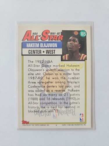 1992 Hakeem Olajuwon All Star Topps NBA Sports Card Ungraded Vintage E86RP6