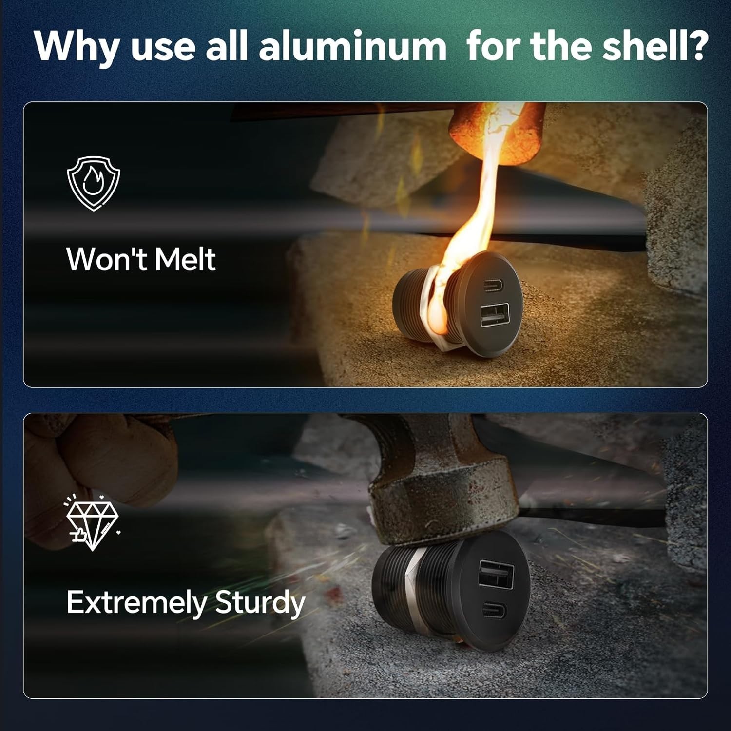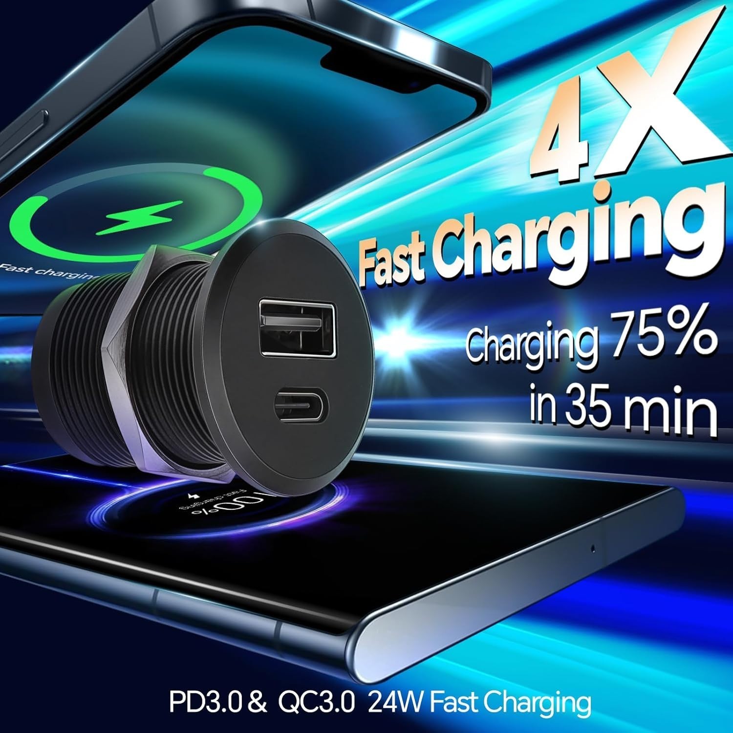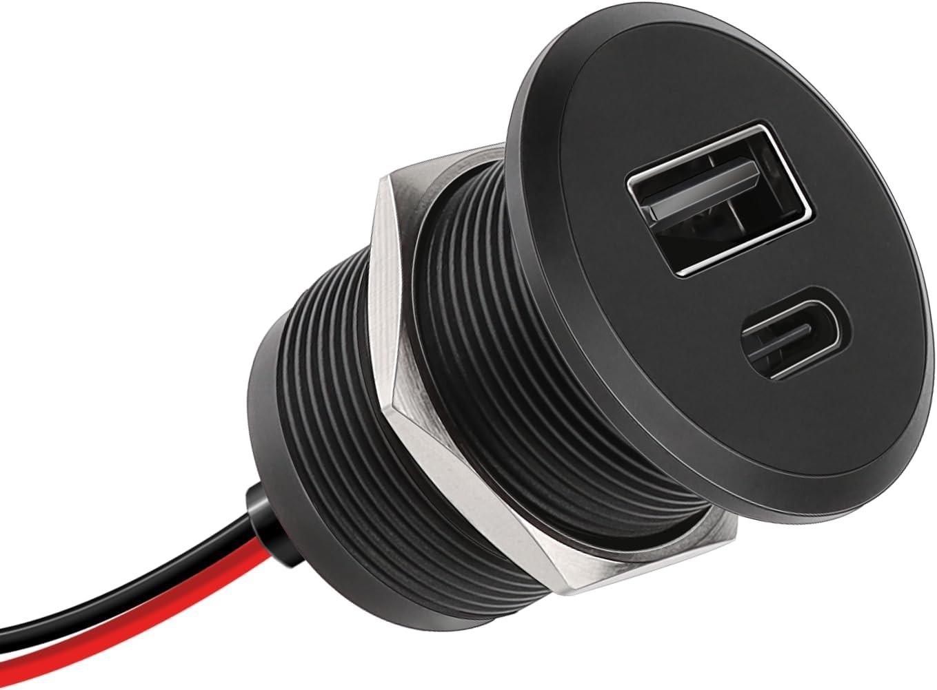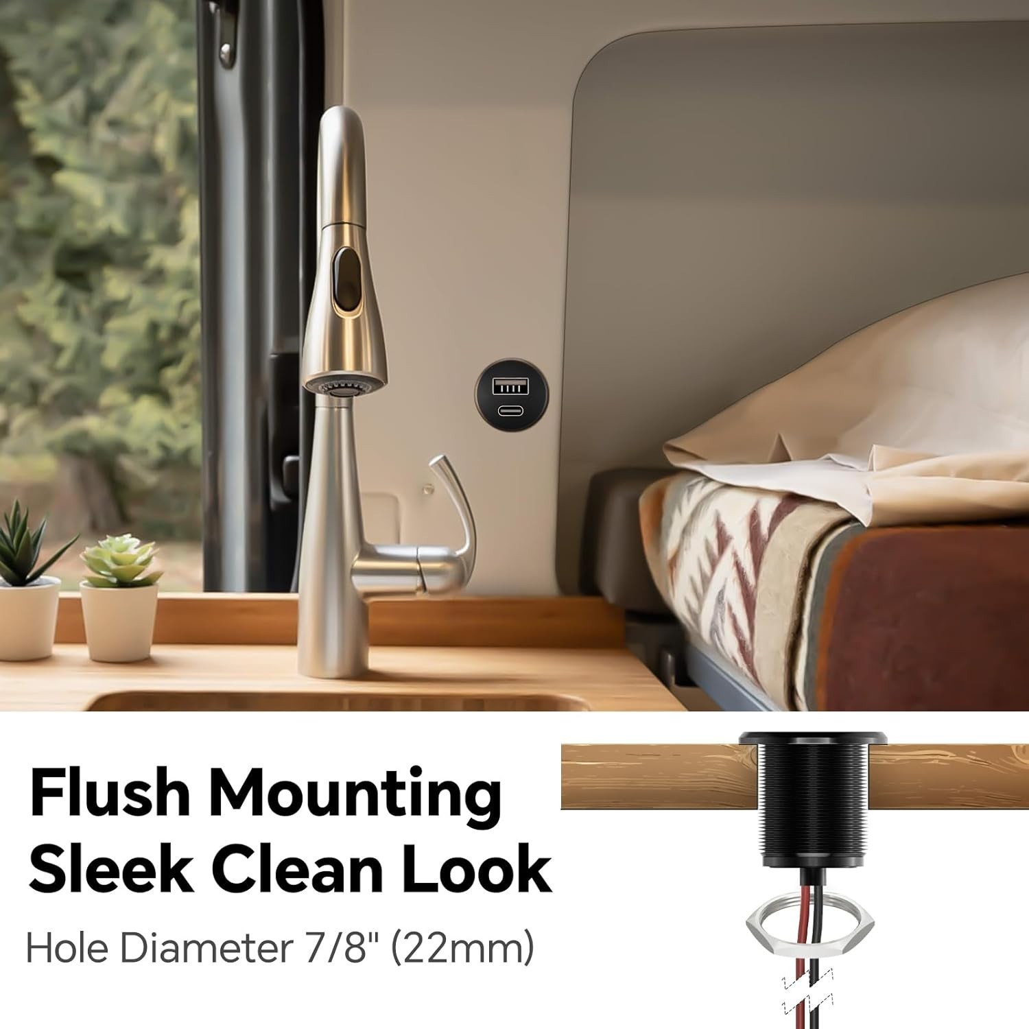 RV USB C Outlet 12V/24V All-aluminum QC 3.0 USB & PD 3.0 USB C 24W Standard