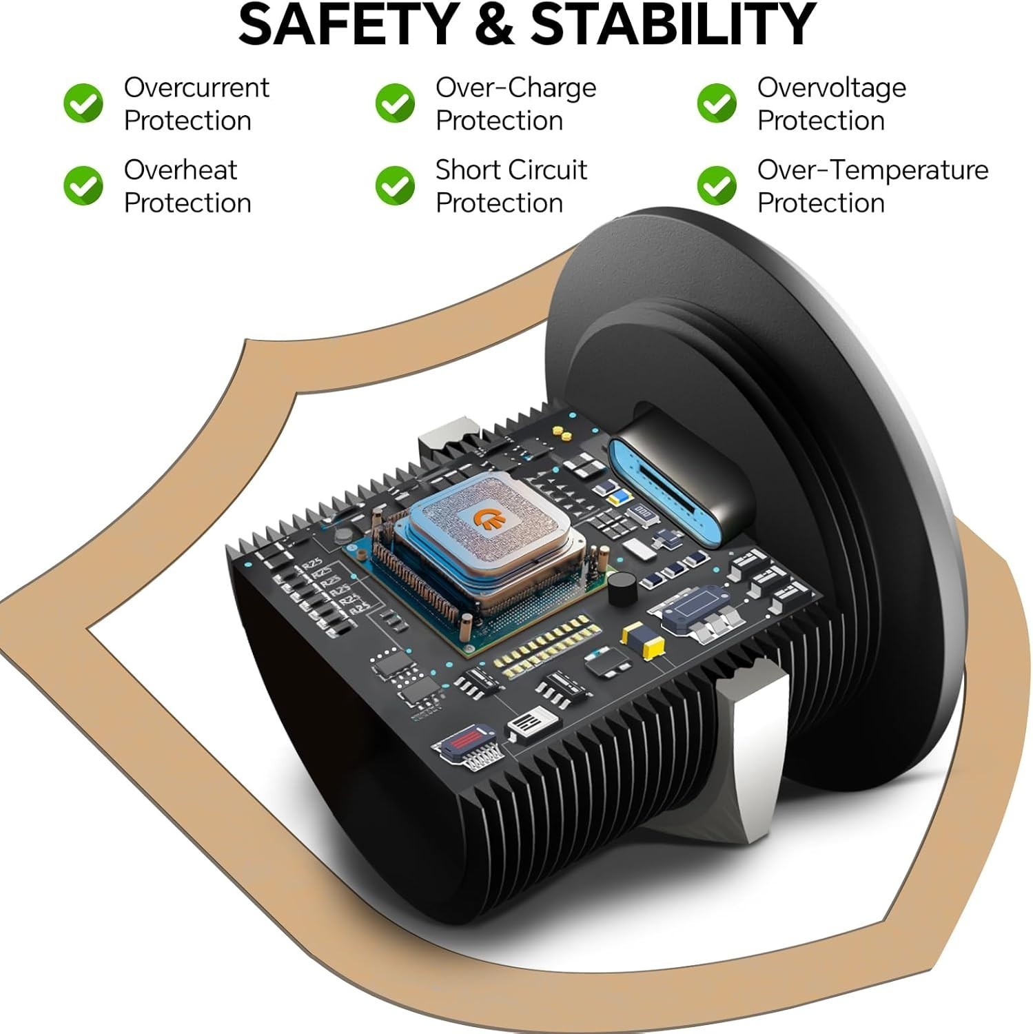 : Equipped with both USB Type-A and USB Type-C ports, this device offers high-speed charging up to 24W per port, supporting output voltages of 5V, 9V, and 12V. Additionally, it enables simultaneous rapid charging of two devices at once.