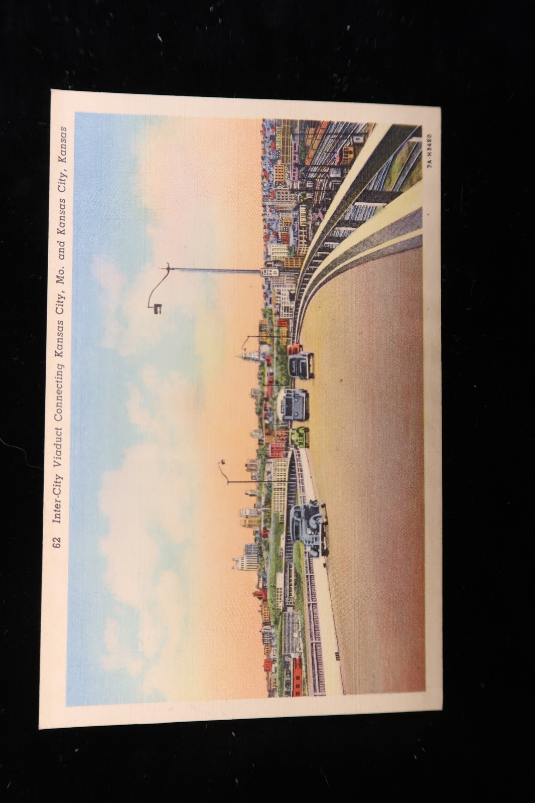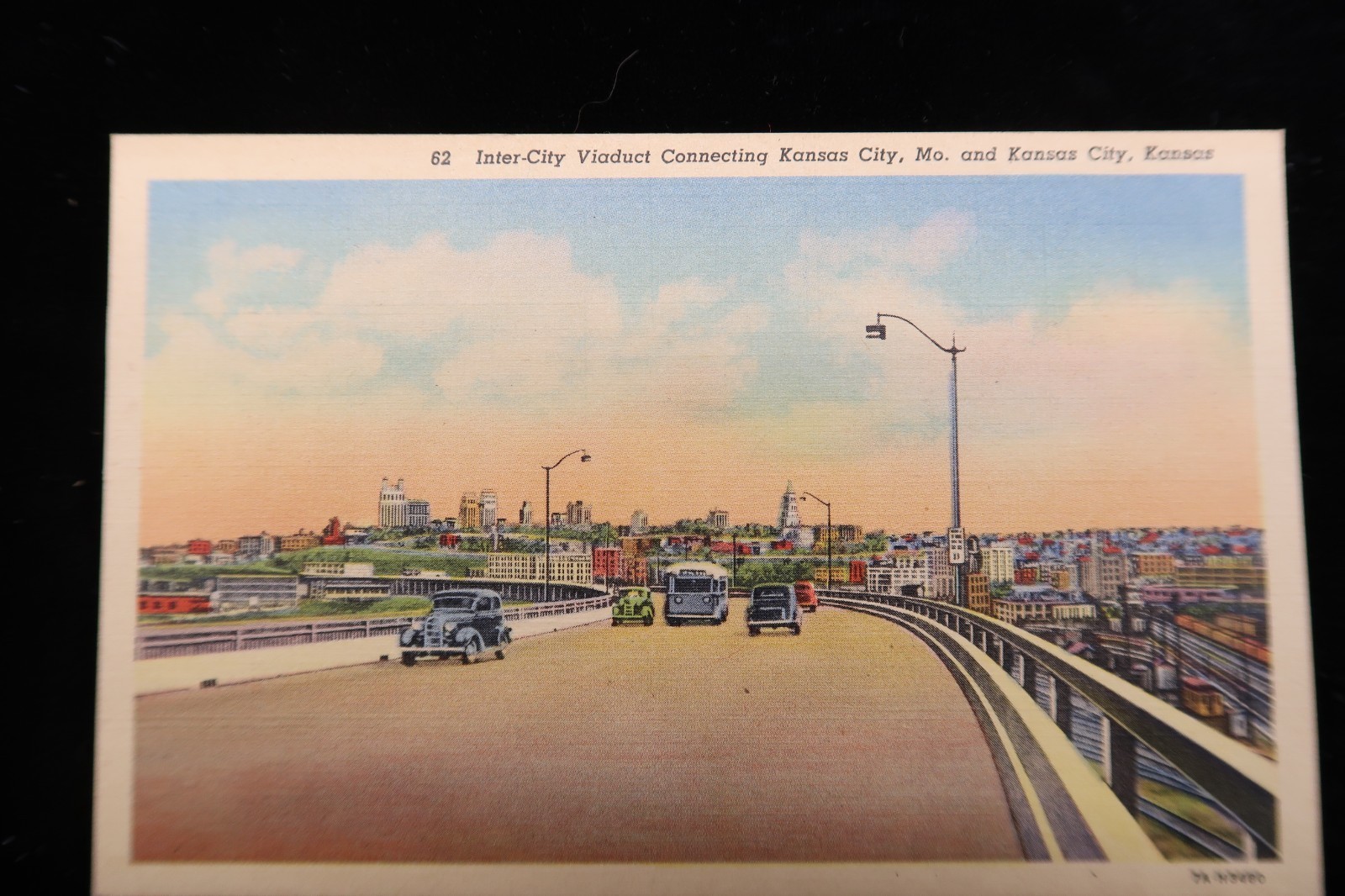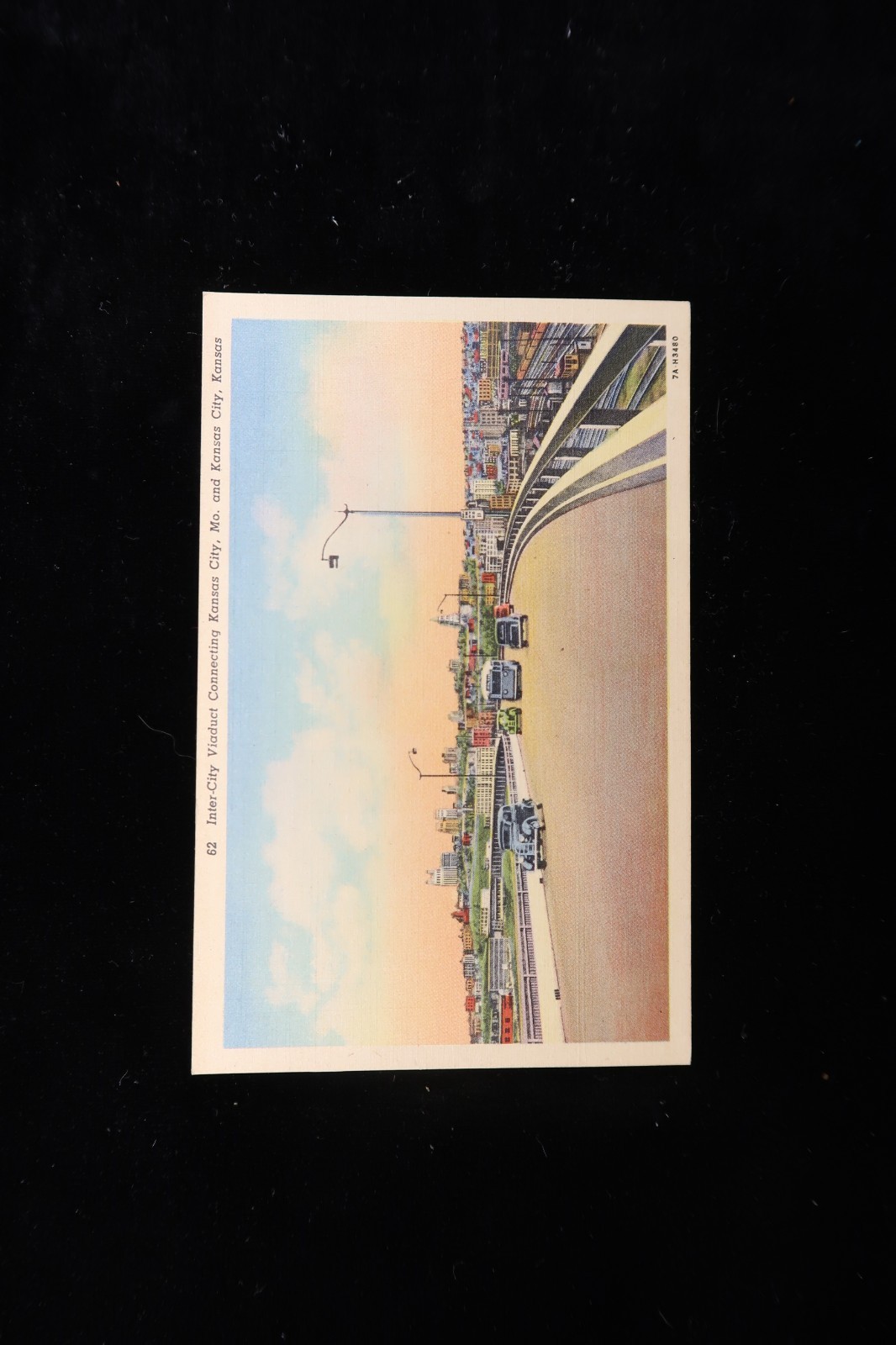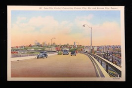 Kansas City Missouri to Kansas Inter City Viaduct Bridge Car Bus Postcard 1937