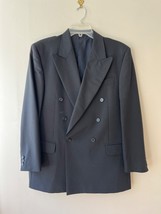 FENDI Men Jacket Sz 40/ L Black Shiny Blue Sparkles Double Breasted Wool Blazer
