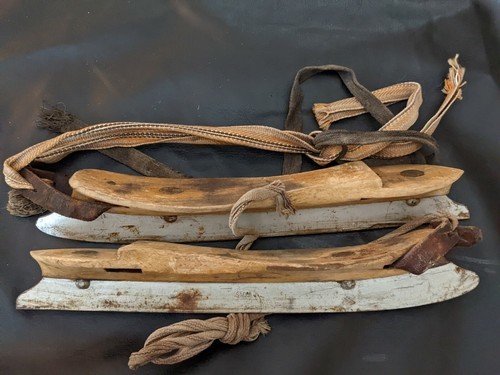 A vendre est un ensemble d'occasion de courses hollandaises antiques Vooran Staal Slade en couches d'origine en bois de glace en bois 27.