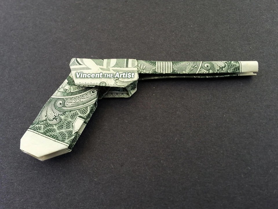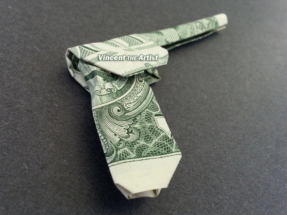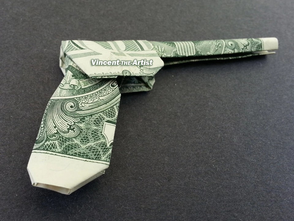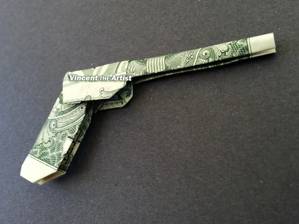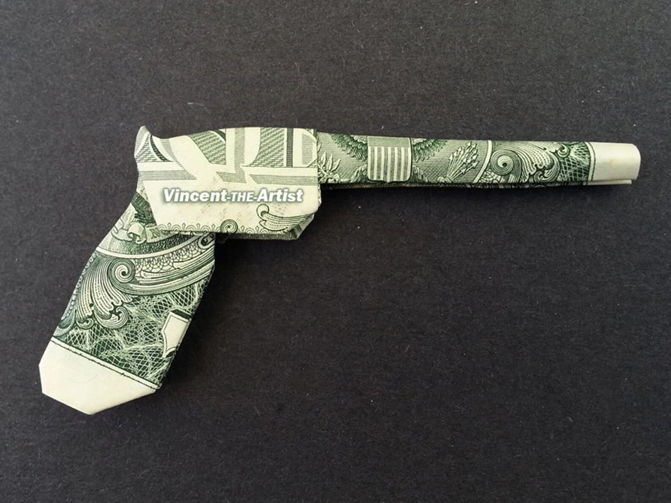 Dollar Origami GUN Made with REAL MONEY Handmade Cash Art Pistol Gift Idea