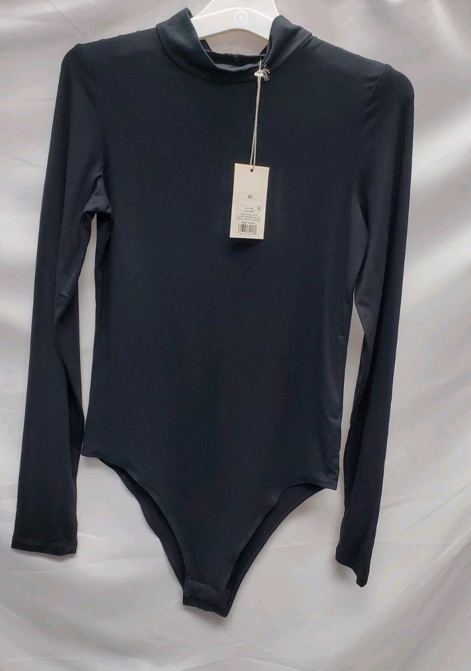 A New Day Women's Extra Small Black Mock Turtleneck Bodysuit Long Sleeve
