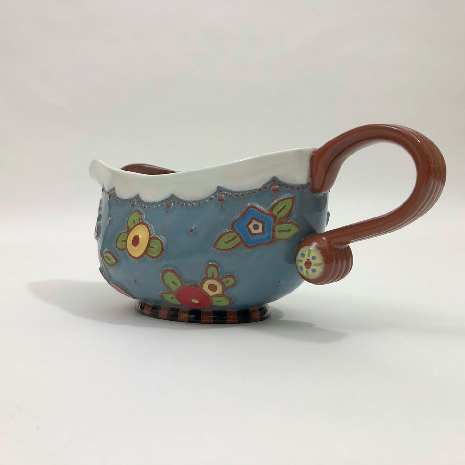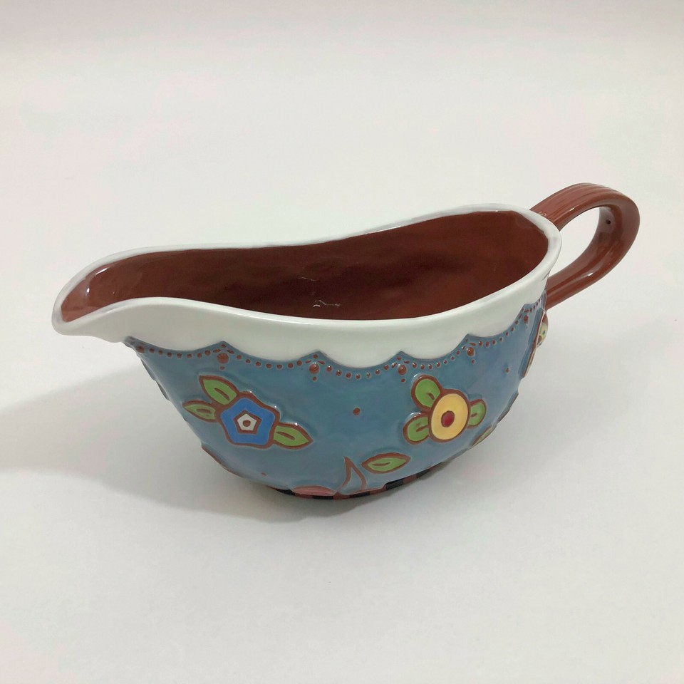 Mary Engelbreit Blue with Brown Interior Gravy Boat 10x4.5x3.5 inches
