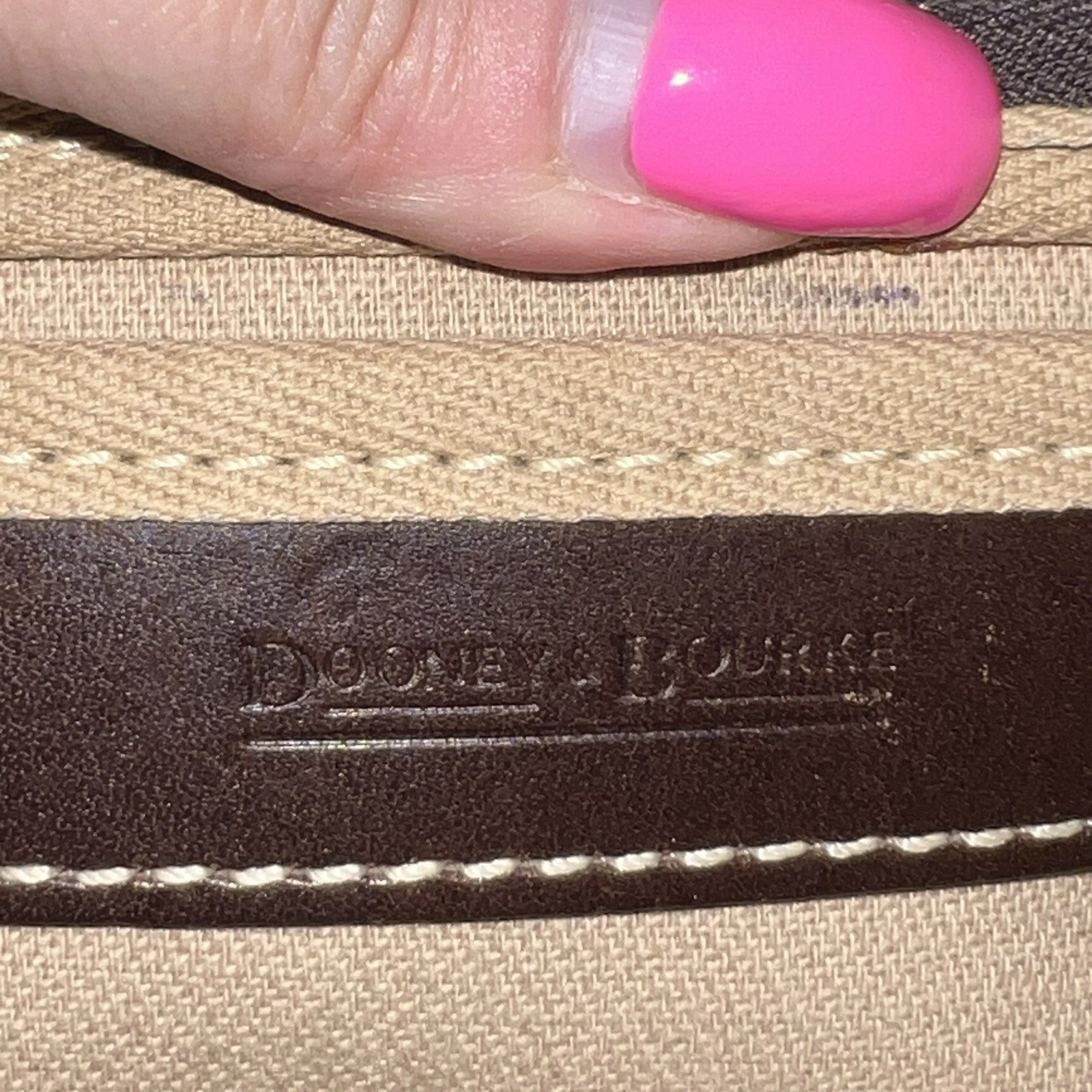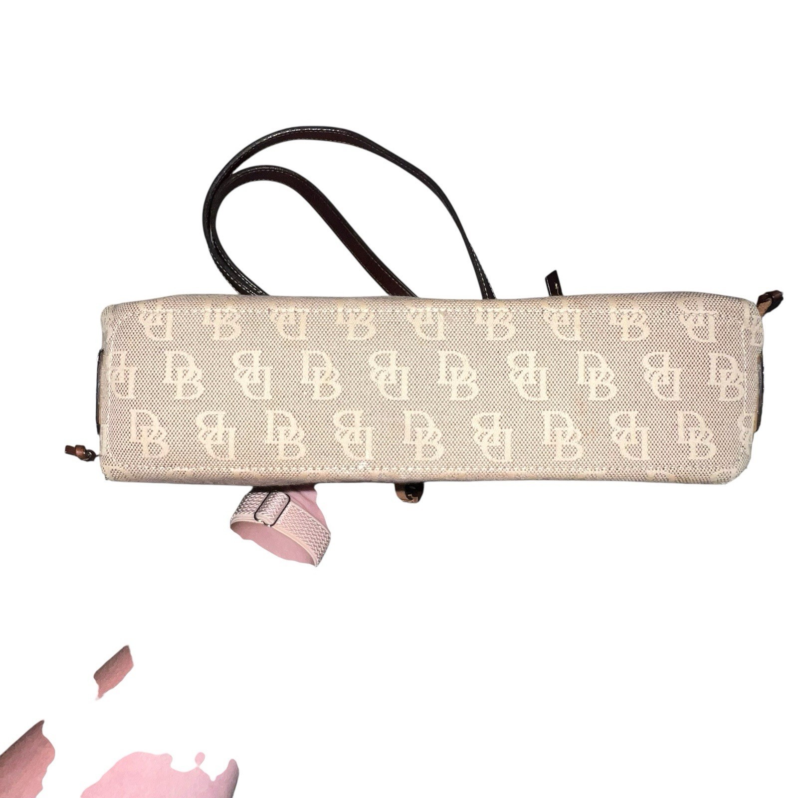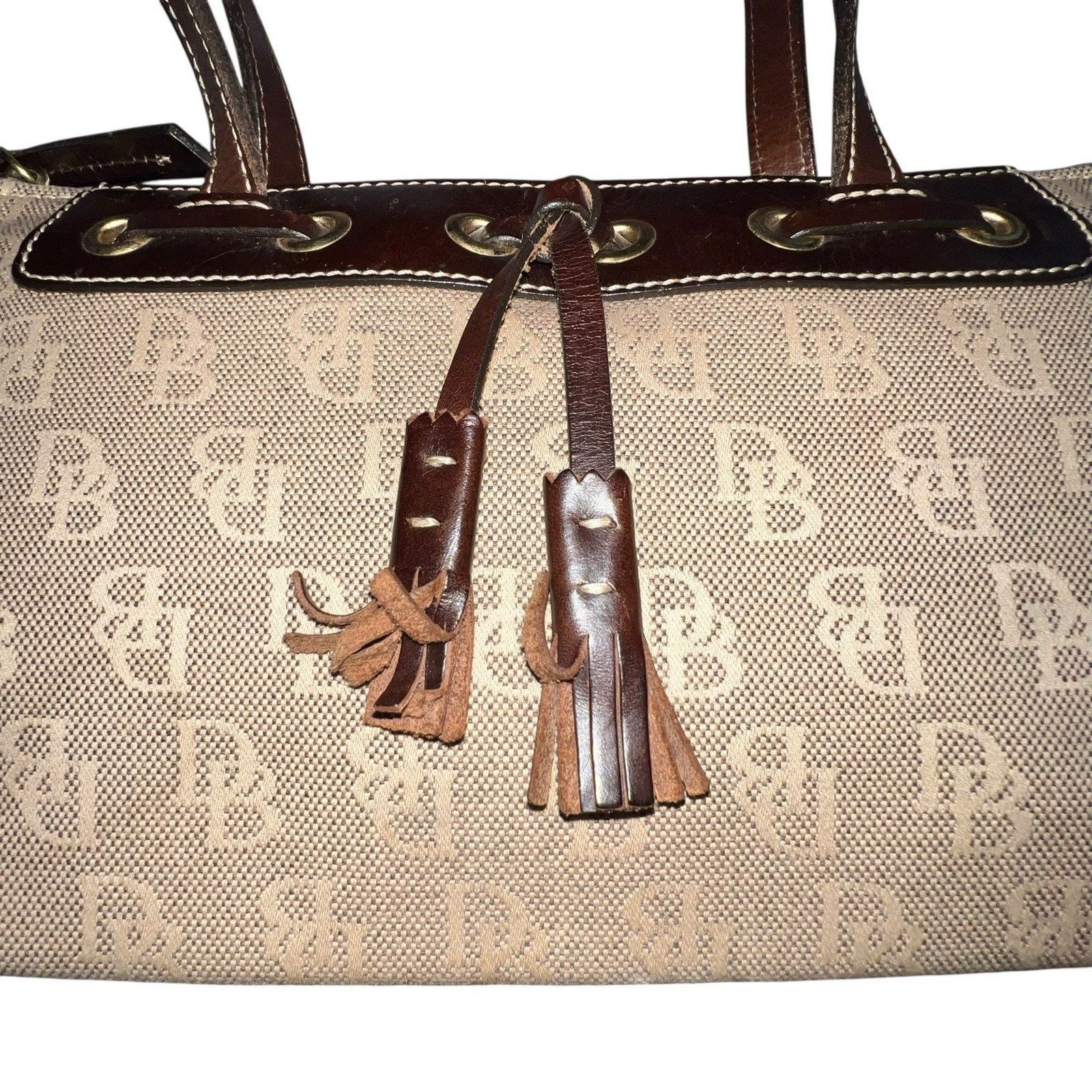 Vintage Dooney & Bourke Tassel Zip-Top Monogram Canvas Leather Shoulder Bag Tan