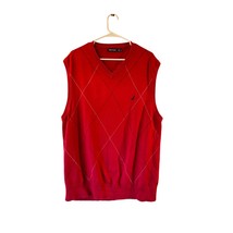 Nautica Men’s XL Red Argyle Cotton Knit Sweater Vest V-Neck Pullover Classic