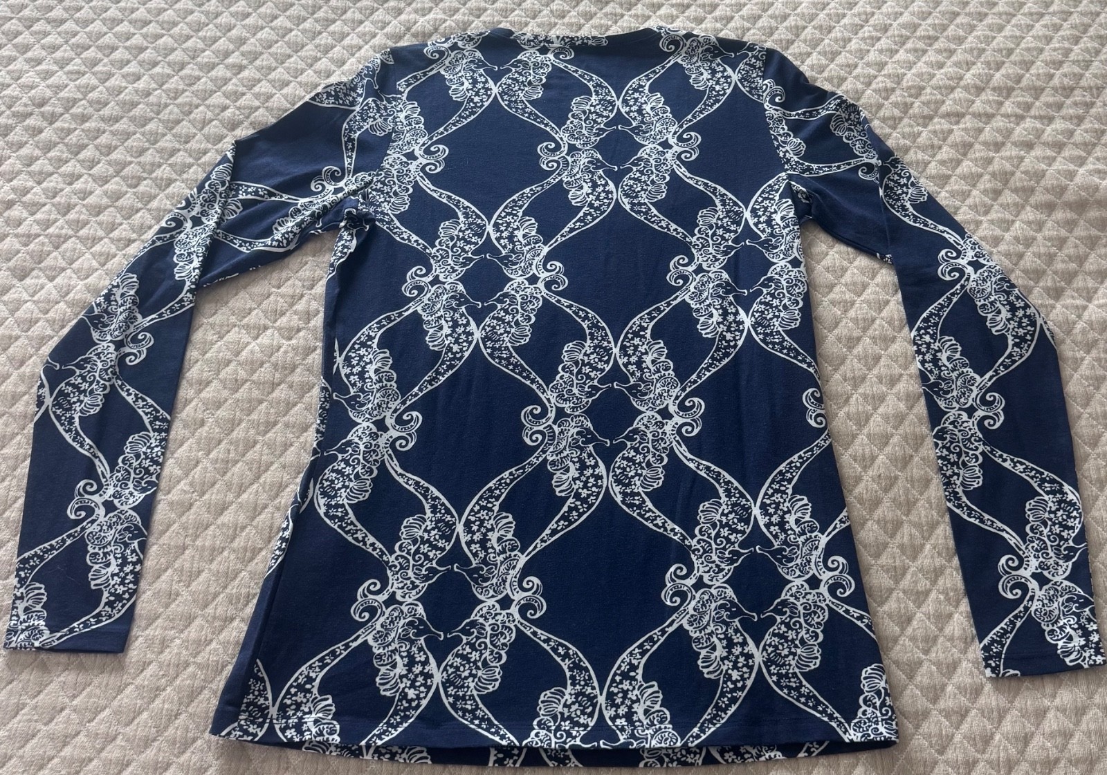 Lilly Pulitzer Jodie Bright Navy MS Behave Long Sleeve V Neck Top Size S NWOT