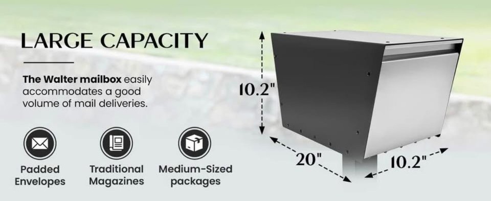 Movo Home Walter Post Mount Mailbox, Modern Curbside Stainless Steel, Large Locking, Black