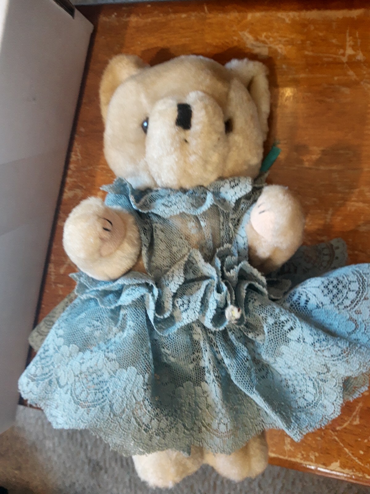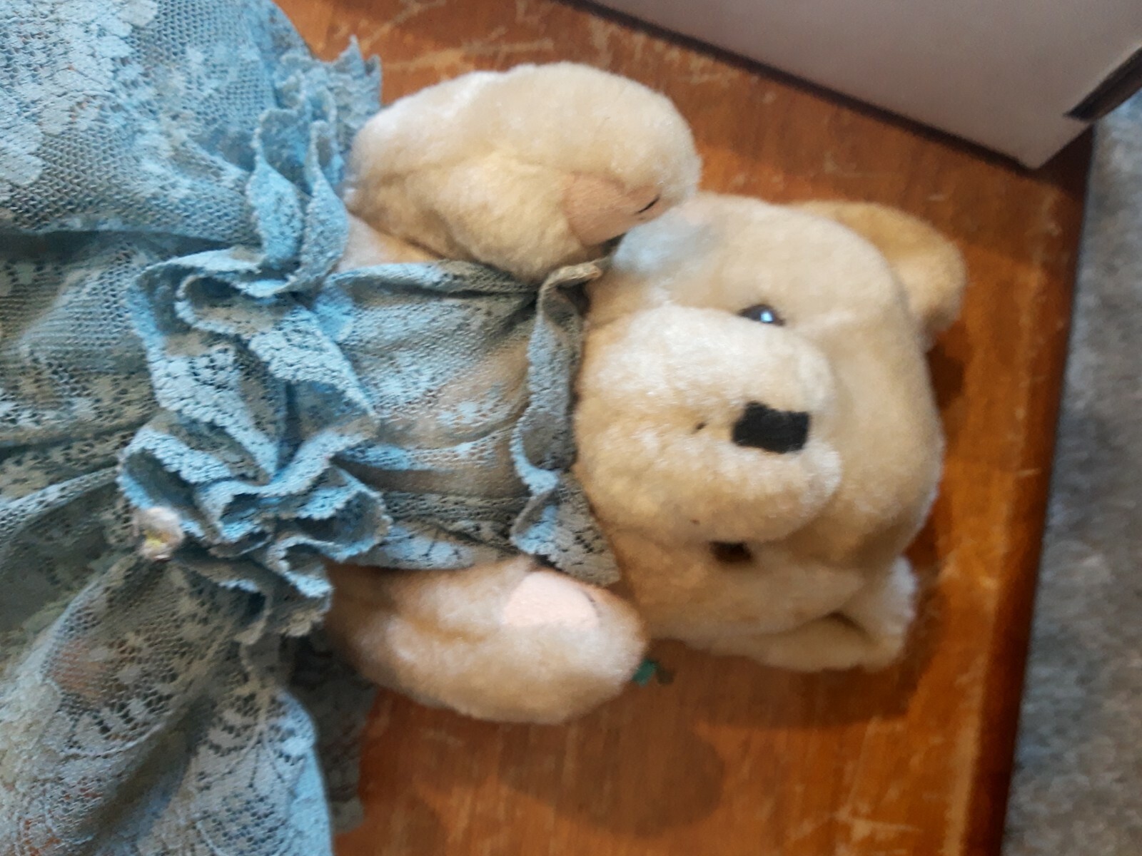 Vintage 1980's Articulated Teddy Bear in Lace Dress