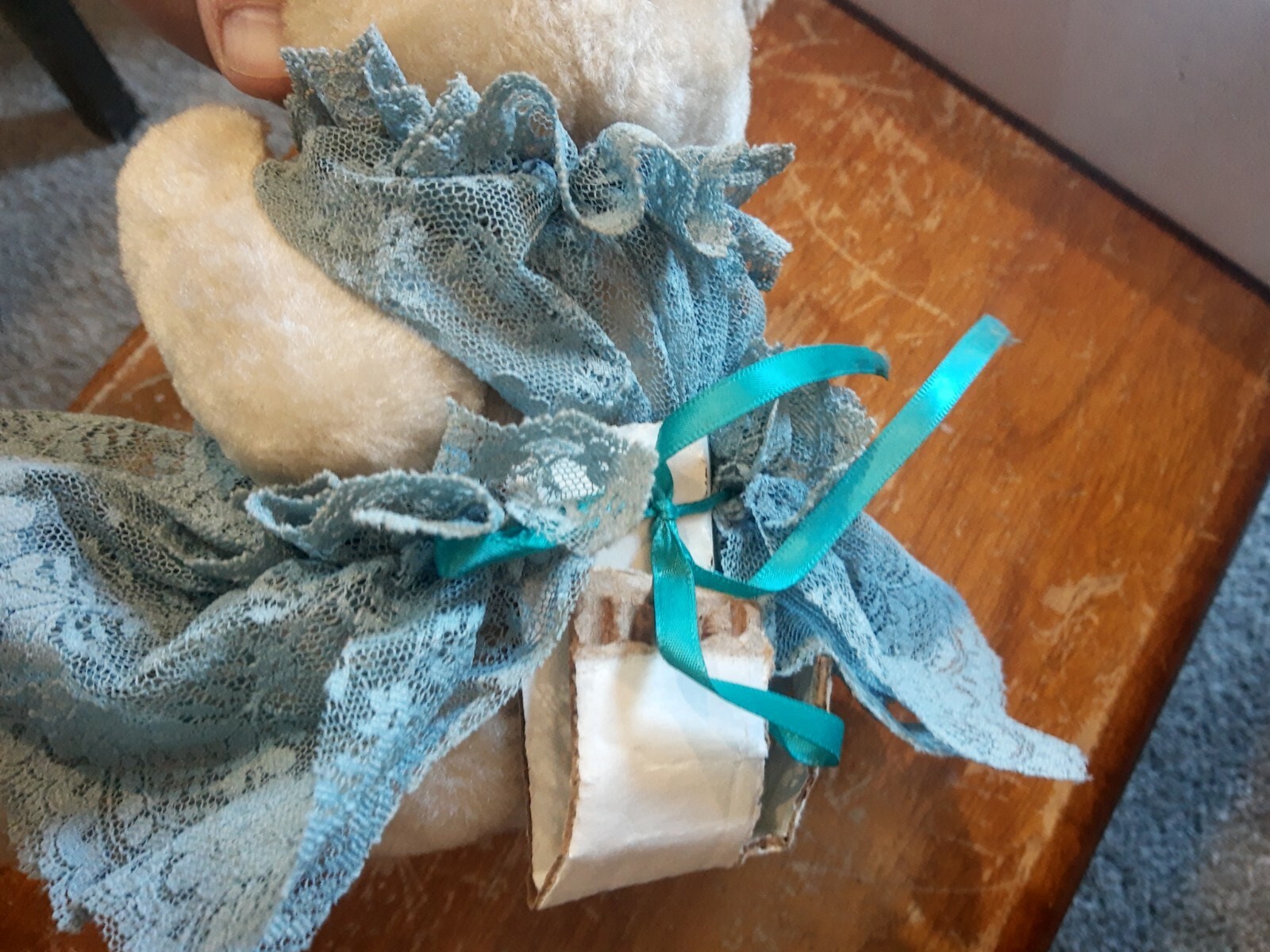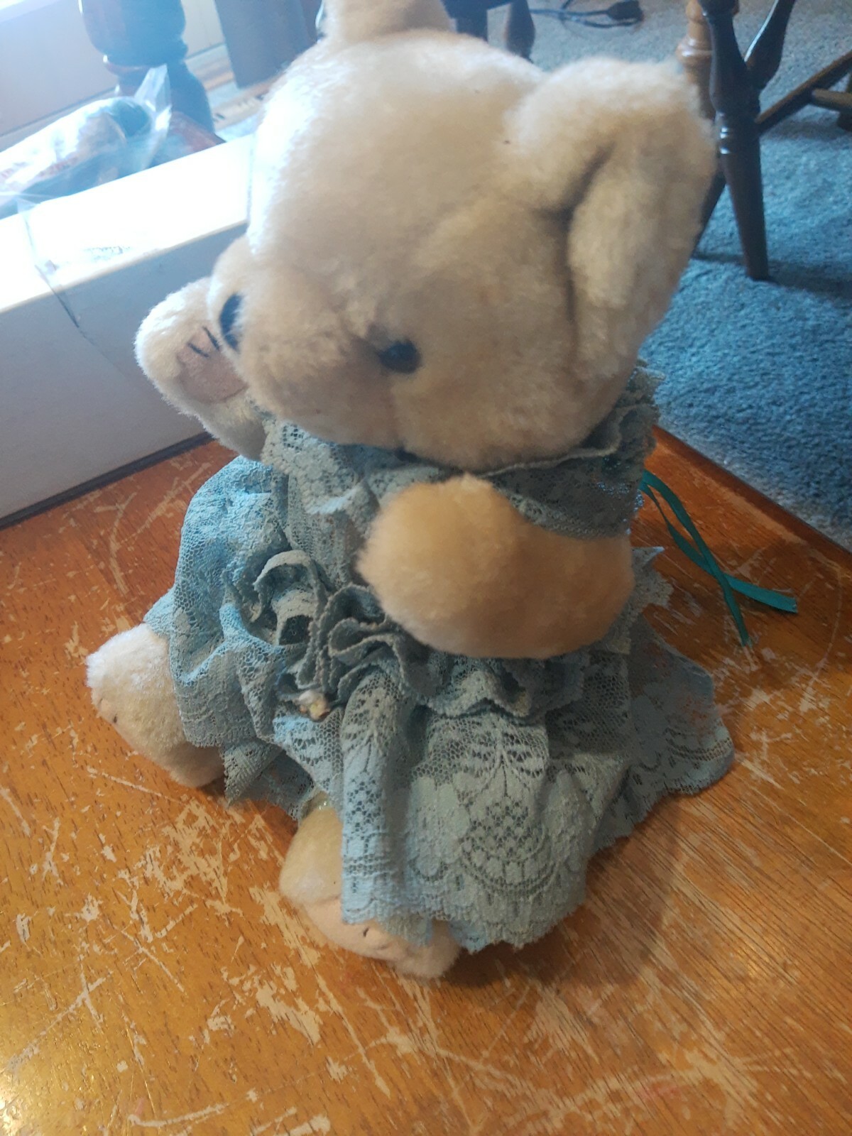 Vintage 1980's Articulated Teddy Bear in Lace Dress Excellent 11" Tall Vermont ?