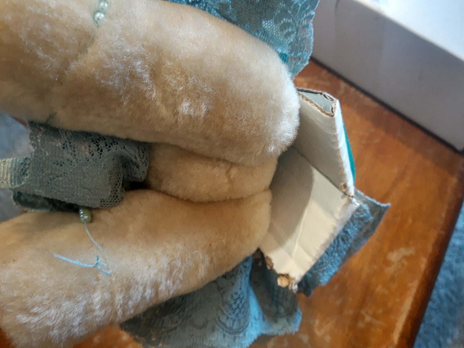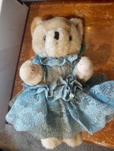 Vintage 1980's Articulated Teddy Bear in Lace Dress Excellent 11" Tall Vermont ? This is great stuff here. Not sure of manufacturer. I cant see it anywhere. Looks new-ish. I got this with a bunch of items from estate sale. Great detail on her dress. Really cute and fuzzy Standing straight measures between 11 inches to tip. FREE SHIP TO USA