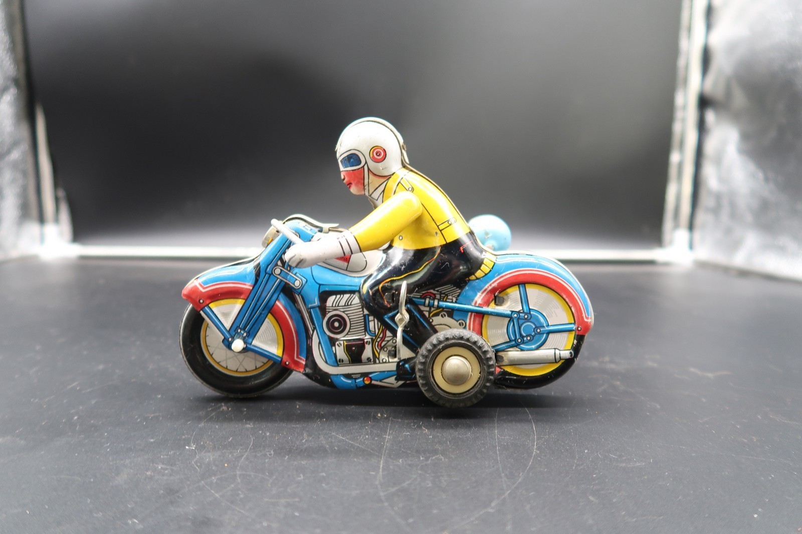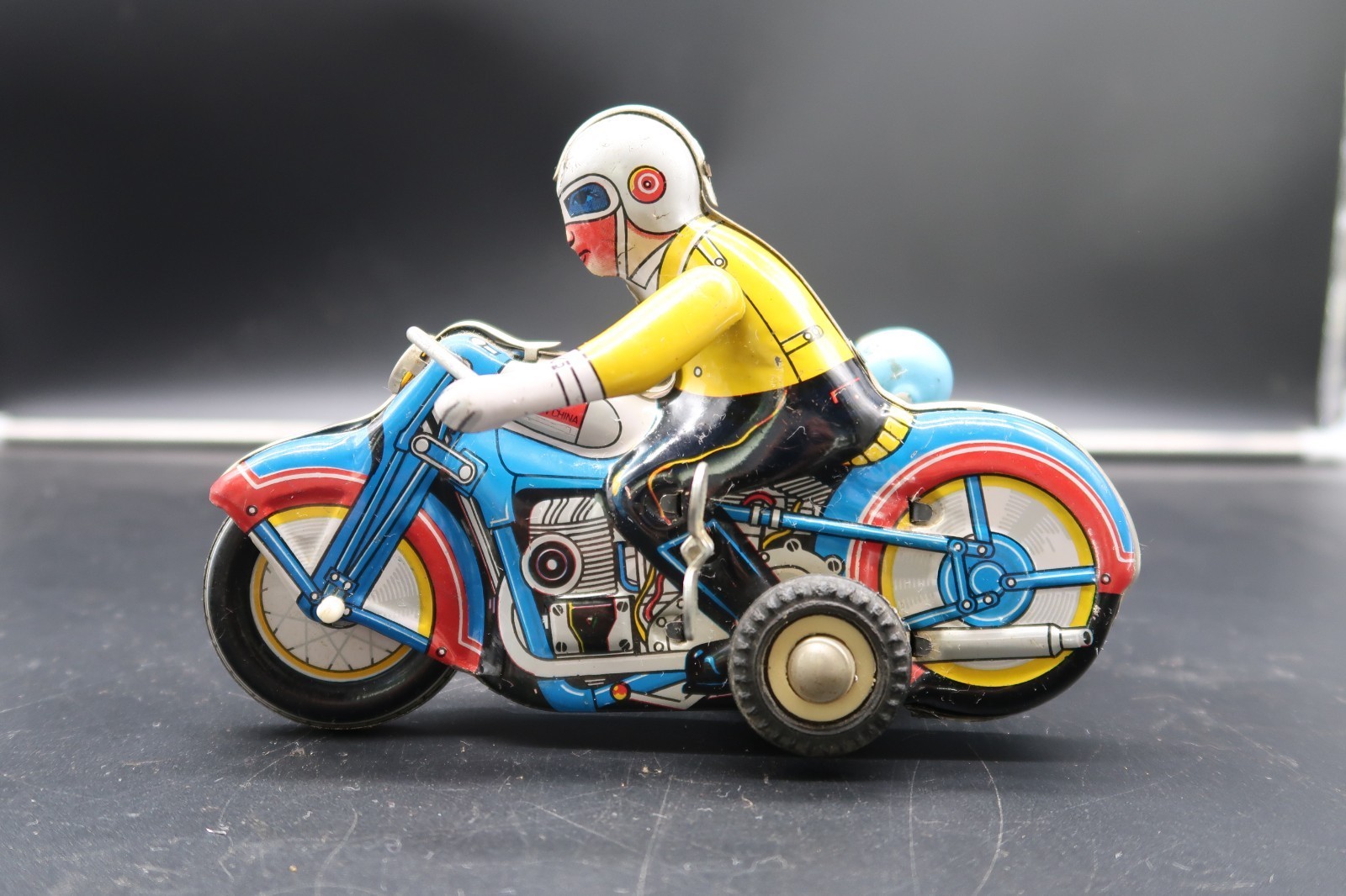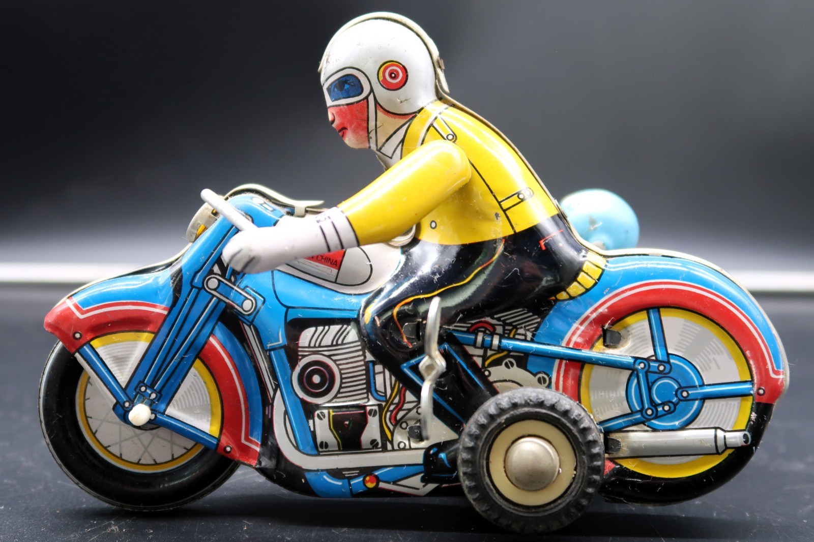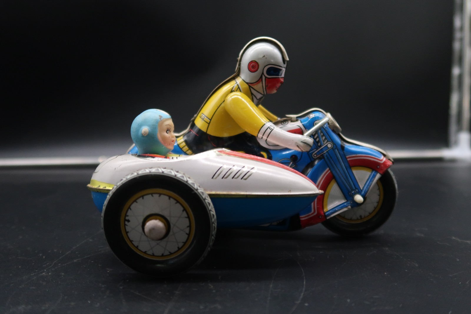 Vintage Collectible Motorcycle With Sidecar Wind-Up Tin Toy w/ Key GSH-605
