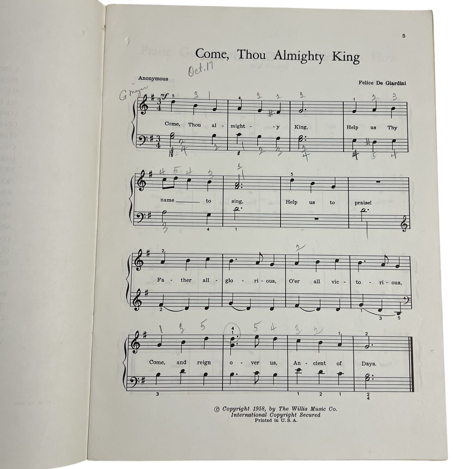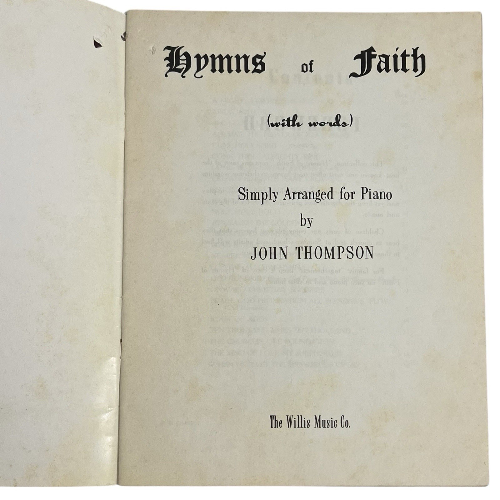 Hymns of Faith With Words Simply Arranged for Piano Vintage 1958 John Thompson
