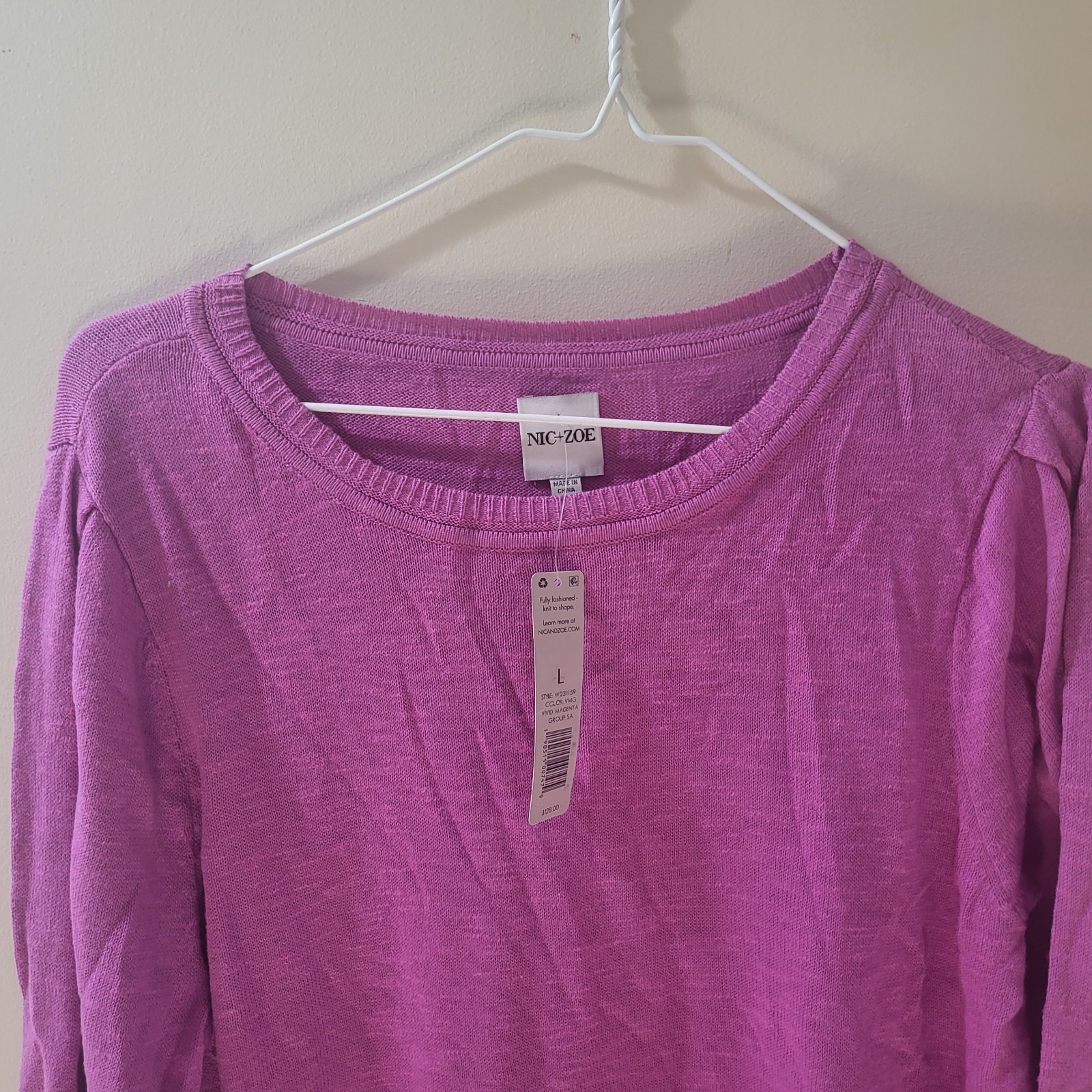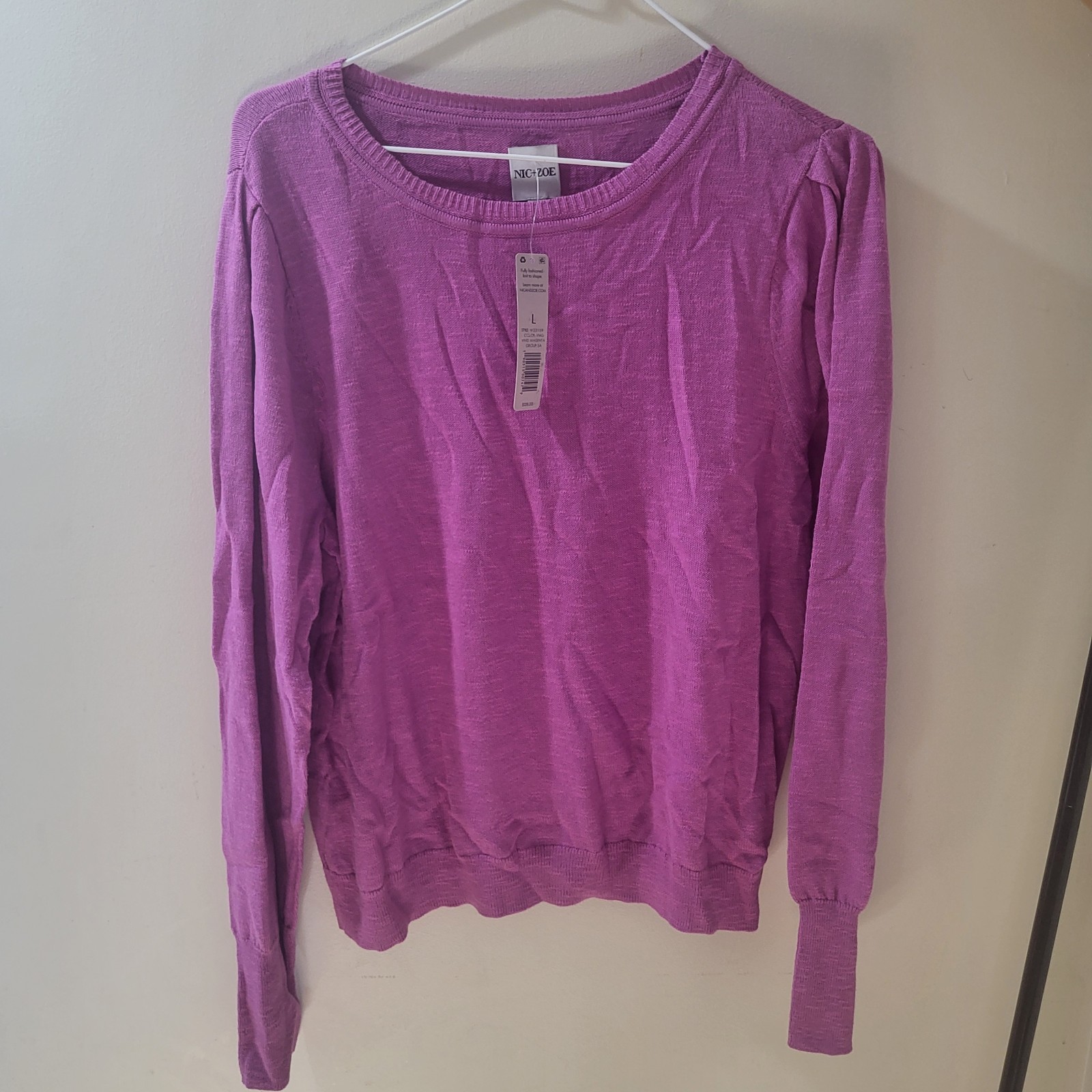 This purple sweater is still new with tag! Pit to pit measures approx 19". 70% cotton 30% acrylic.