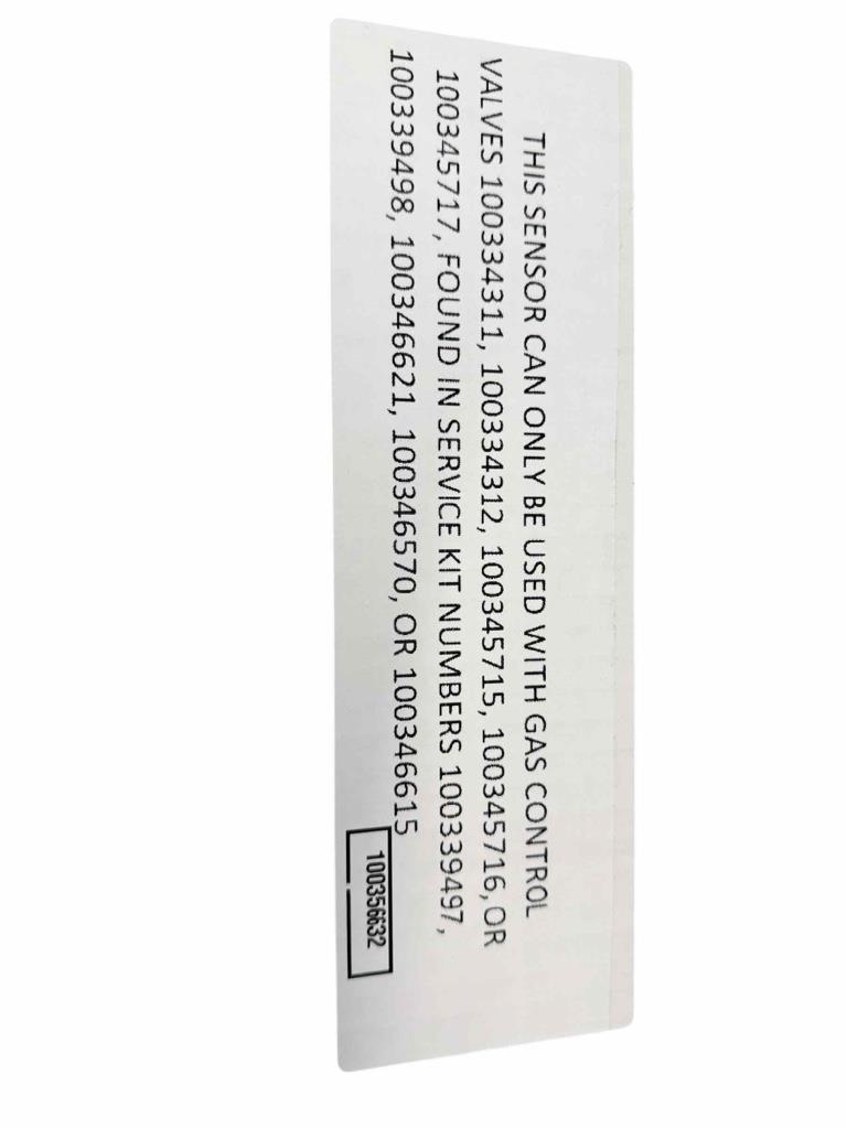 *THIS SENSOR CAN ONLY BE USED WITH GAS CONROL VALVES 100334311, 100334312, 100345715, 100345716, OR 100345717, FOUND IN SEDRVICE KIT NUMBERS 100339497, 100339498, 100346621, 100346570, 100346615.