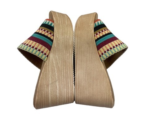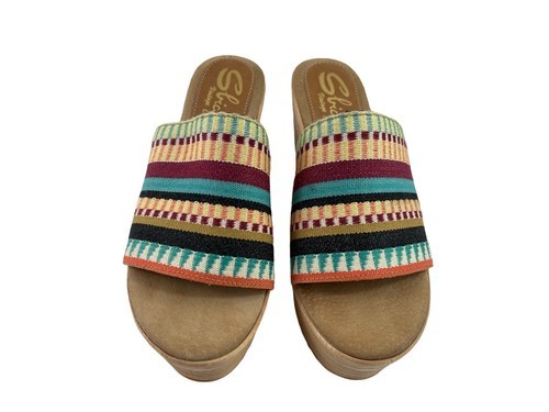Sbicca Slides Sandals Women 7.5M Violetta Shoes Red Blue Striped Platform Wedge