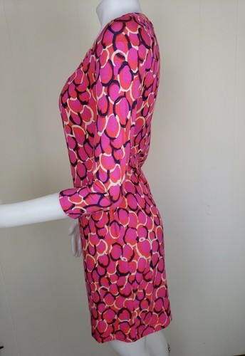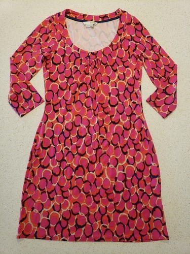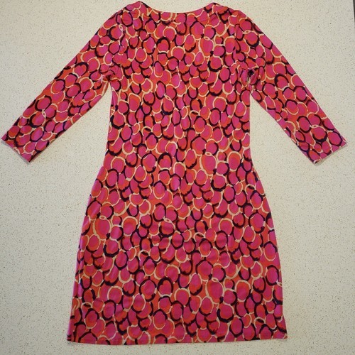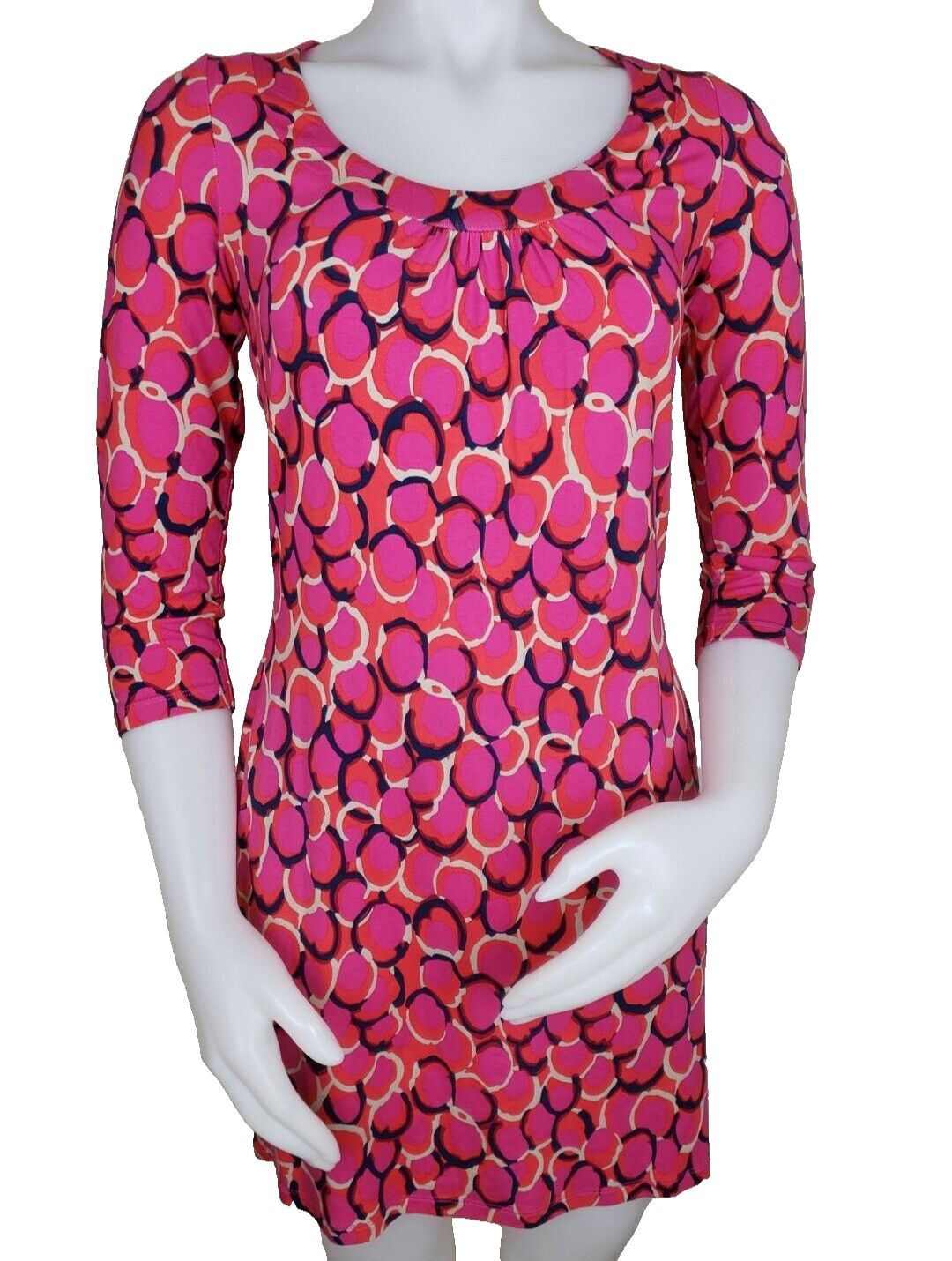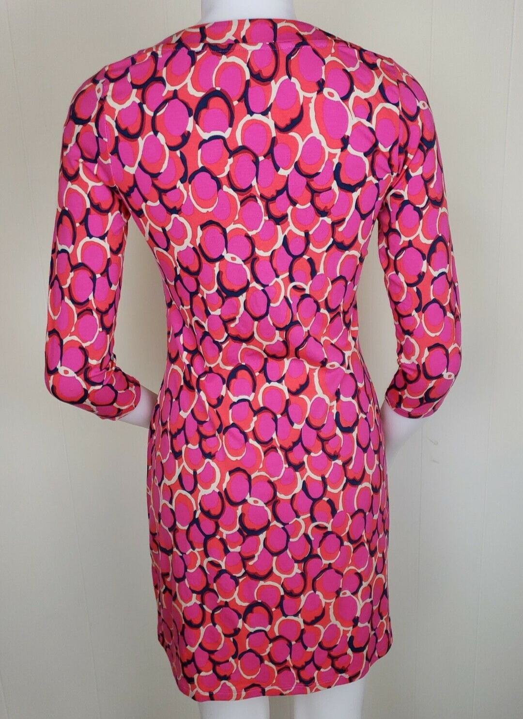 Boden Dress Womens 6 Pink Red Polka Dot Print Jersey Knit Short Shift 3/4 Sleeve