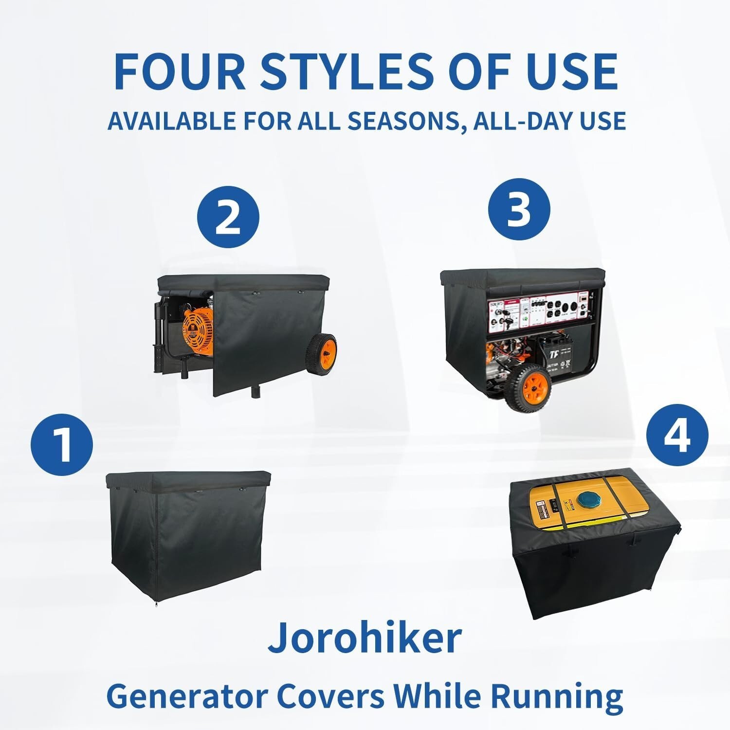 Protect your generator in any weather with the Jorohiker All-round Compatibility Generator Cover. Designed for most 5000W-10000W models with a universal size of 32"x24"x24", it offers comprehensive protection, including easy access and heat dissipation via openable sides and top. The upgraded windproof Velcro and zipper ensure a secure fit, preventing wind from displacing the cover. Made with durable, three-layer materials?heavy-duty waterproof polyester with PU coating, lining, and tear-resistant construction?it's suitable for rain, snow, wind, dust, and humidity. Compatible with popular models like Westinghouse WGen9500DF, DuroMax XP13000EH, and Champion generators, this cover keeps your equipment safe -round.