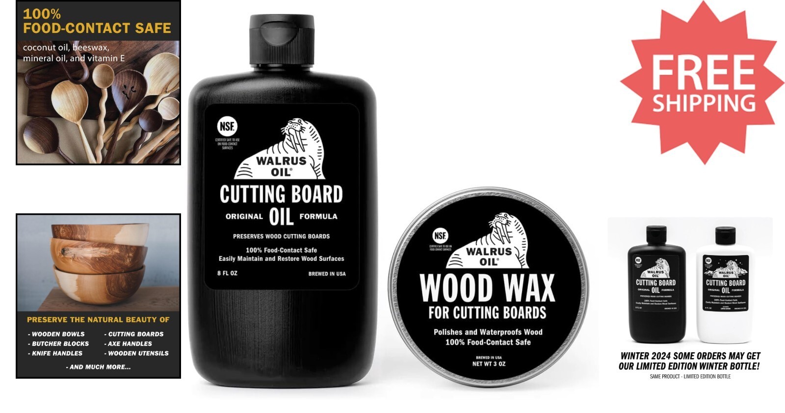 Walrus Oil Set for Butcher Blocks - Food-Contact Safe Kitchen Essentials