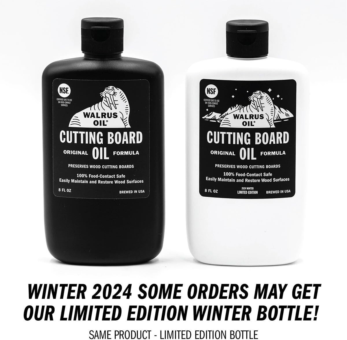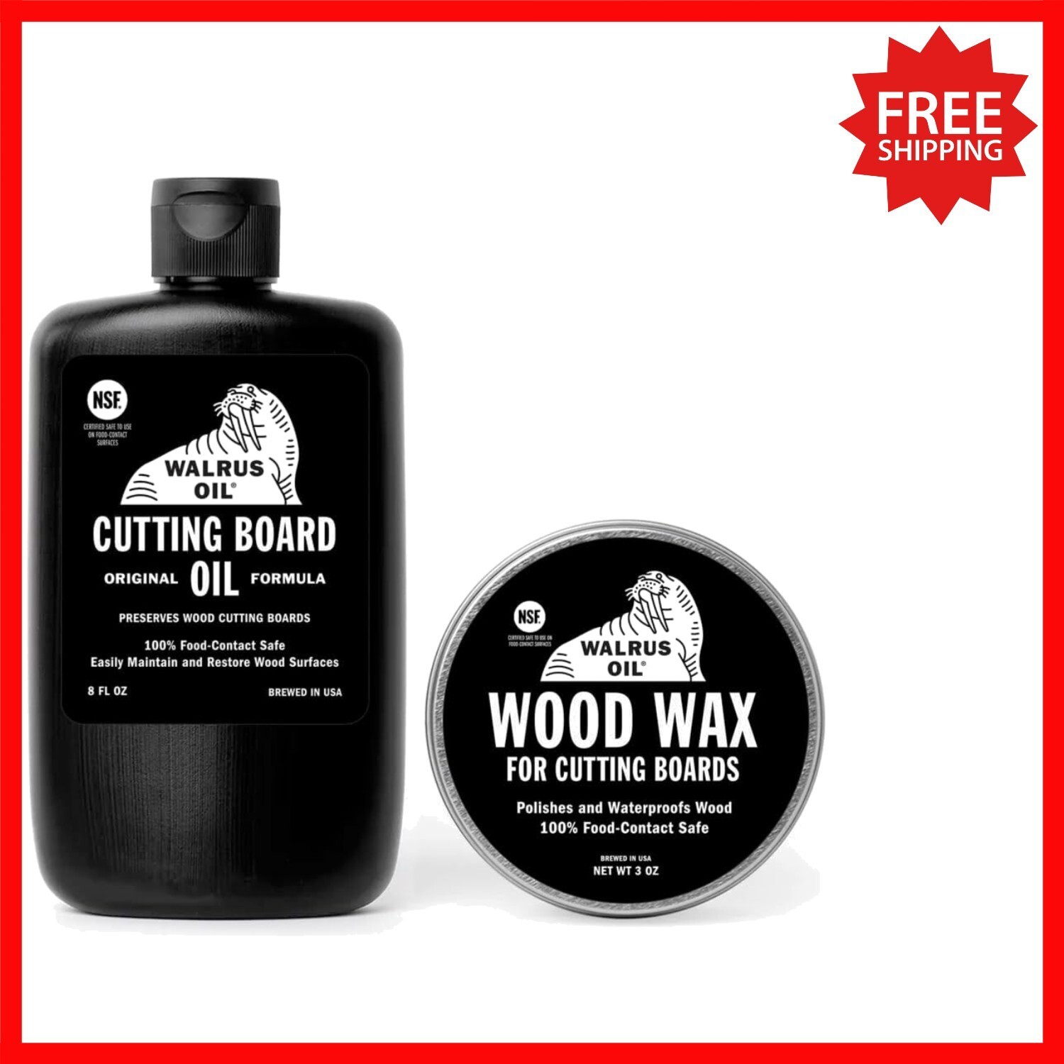 Keep your cutting boards in pristine condition with our Easy to Use Complete Cutting Board Maintenance Kit. This set includes 8oz of Cutting Board Oil and 3oz of nourishing Wood Wax, both compliant and 100% food-contact safe. Crafted with durability in mind, Walrus Tough guarantees long-lasting performance?so you can rely on it to work hard for you. Proudly brewed in the USA, this kit is the ideal solution for maintaining your kitchen essentials.