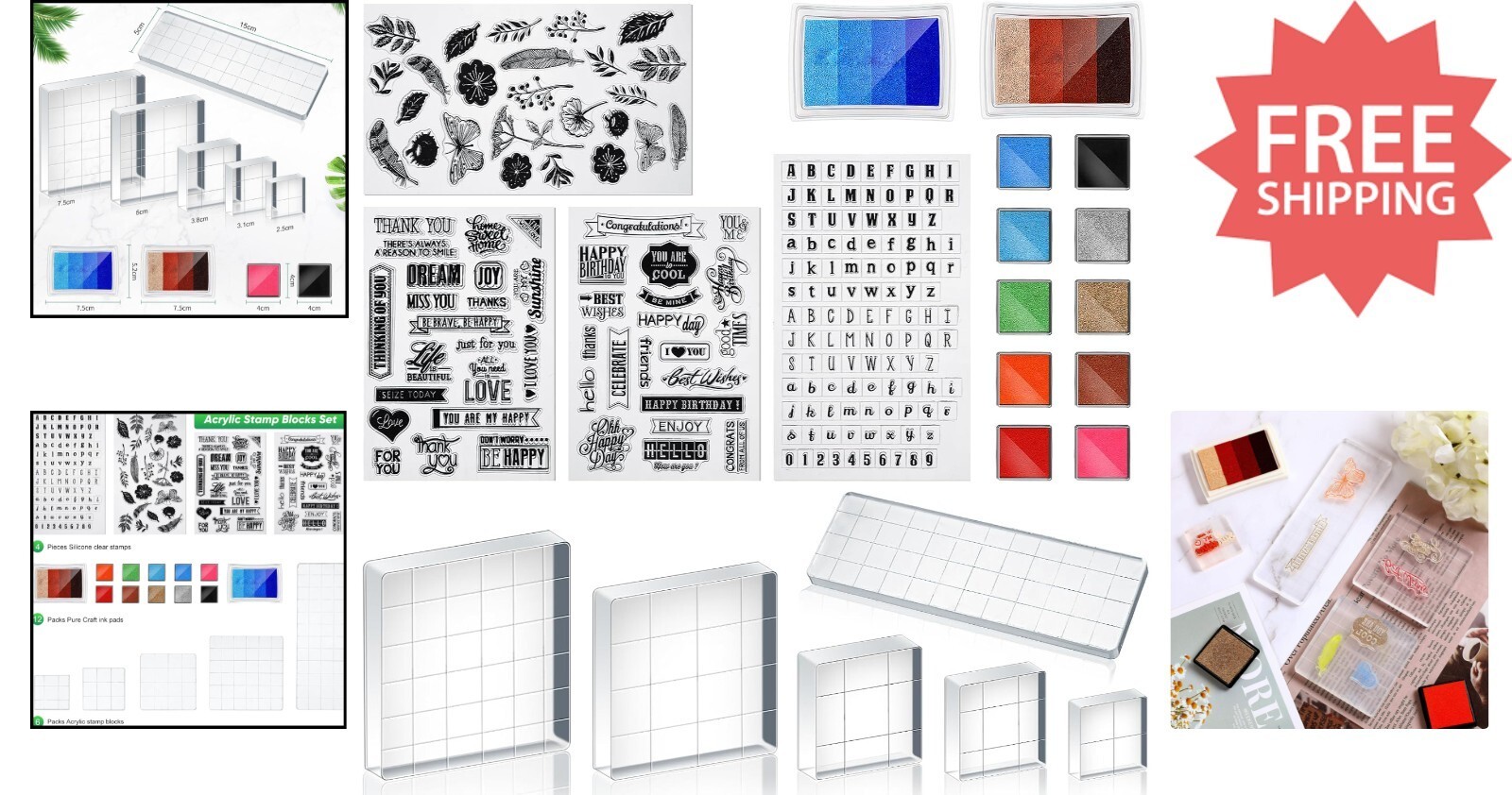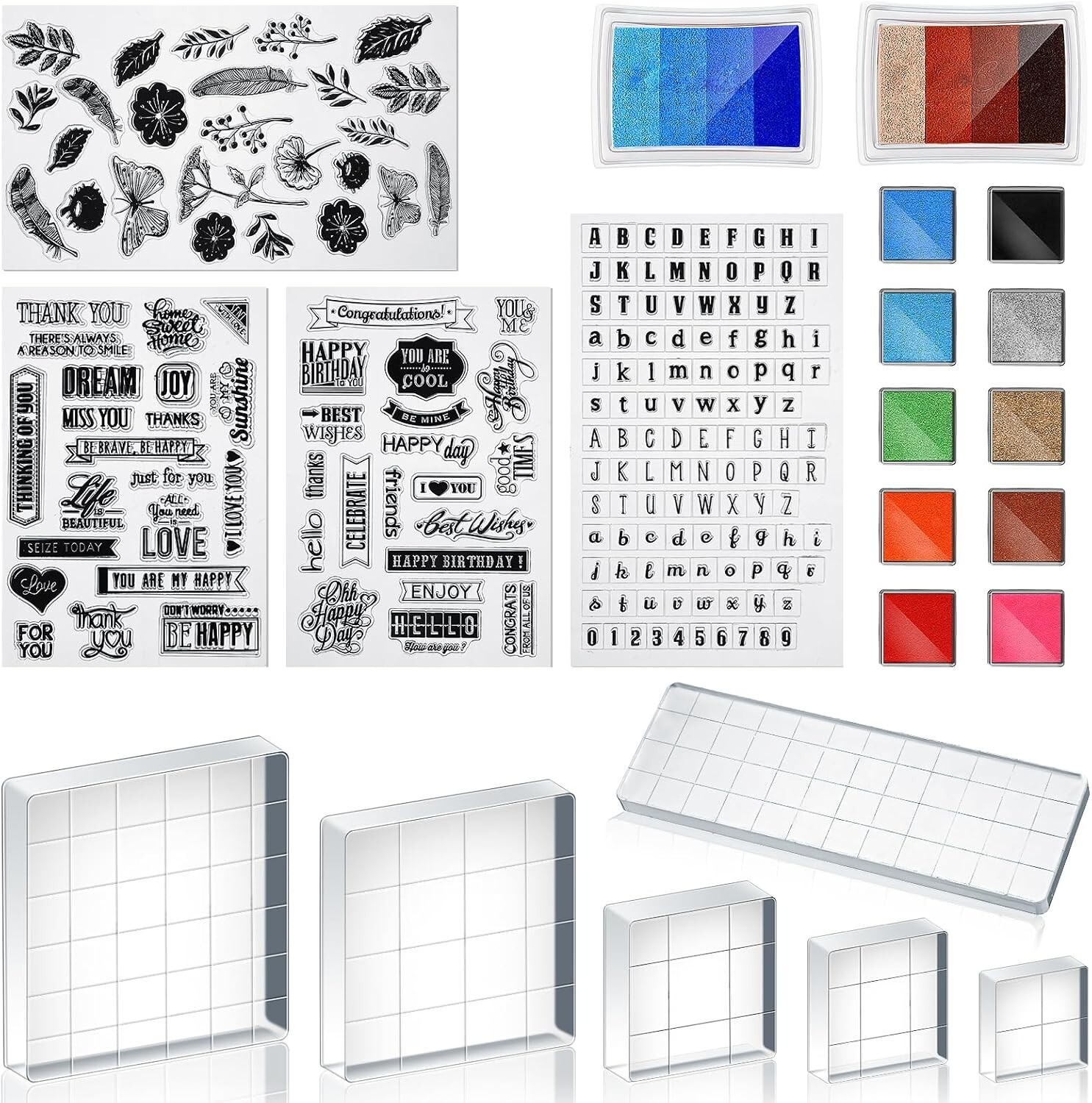 22-Piece Acrylic Stamp Block Set with Silicone Seals and Vibrant Ink Pads
