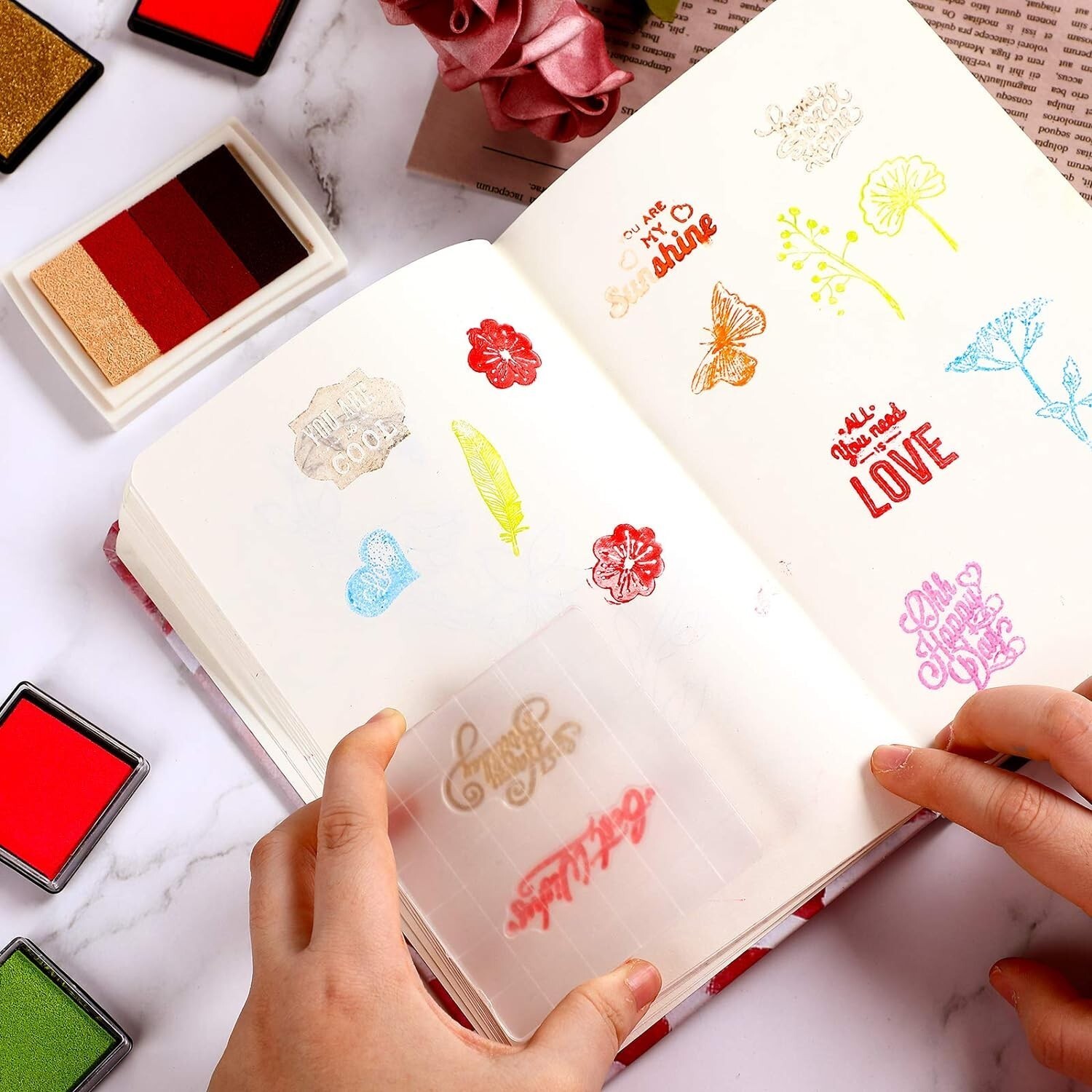 The acrylic blocks feature grid lines for precise alignment and come in six different sizes to suit various creative needs. The silicone stamps are flexible and designed for smooth, easy stamping on paper, albums, gift tags, and more. With their wide range of uses and attractive designs, this set makes an excellent gift for craft enthusiasts.