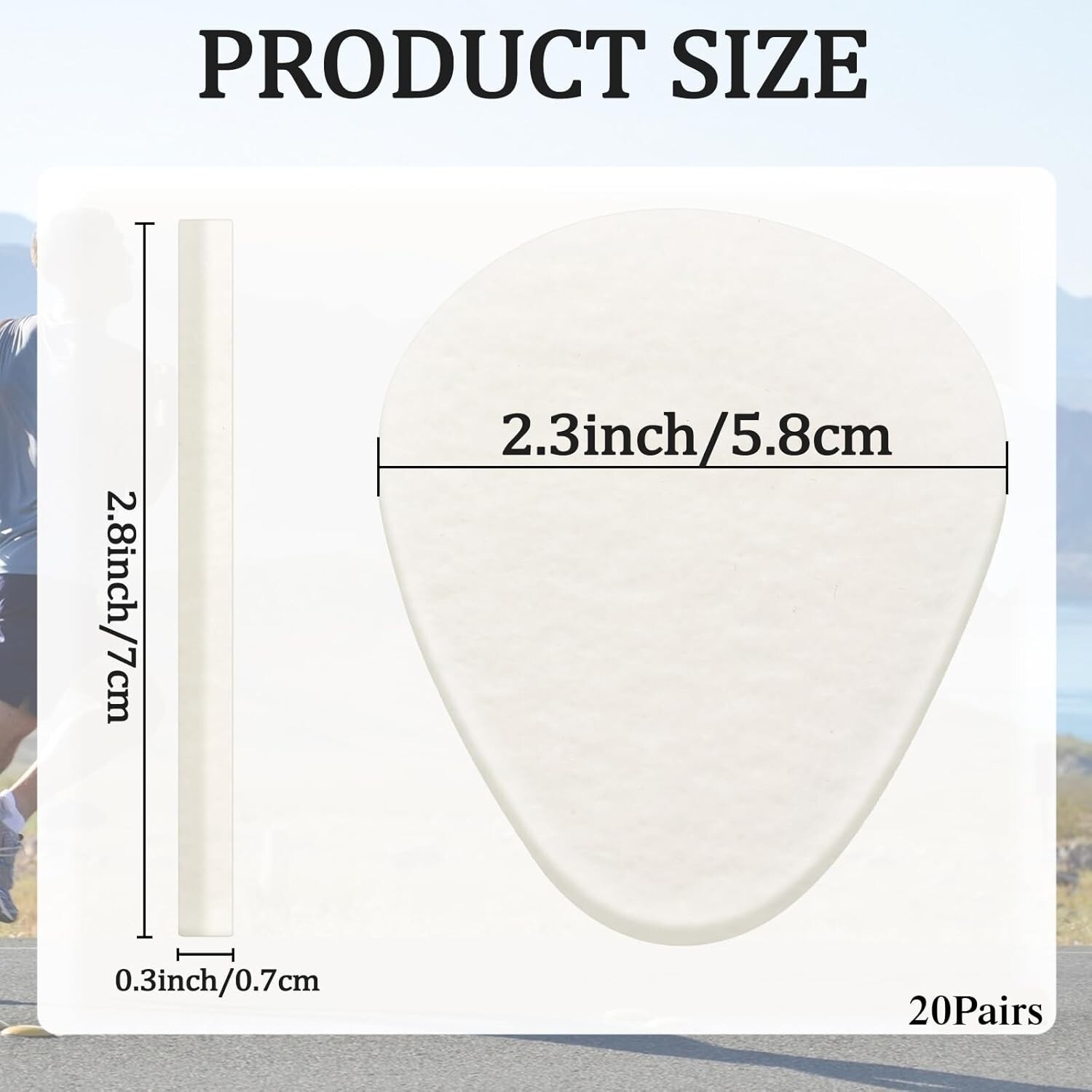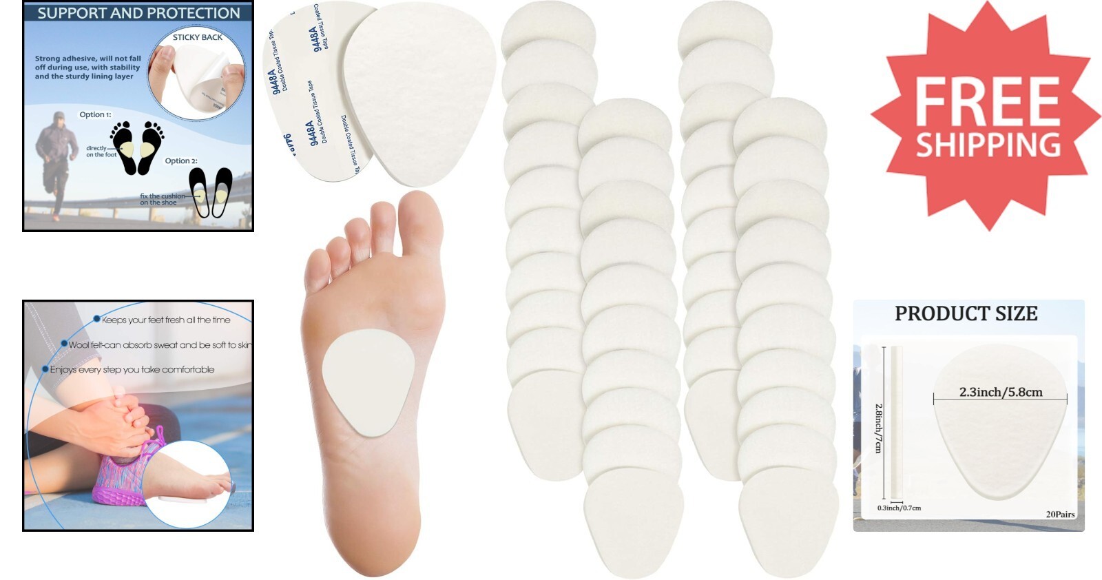 Experience comfort and relief with our pack of 20 pairs (40 pieces) of metatarsal pads. Crafted from soft wool felt, these pads absorb sweat and ensure a comfortable fit for most feet, helping you stay fresh and confident with every step. The thick design, approximately 1/4 inch, provides excellent vibration absorption and cushioning, reducing impact and alleviating foot pain and soreness.