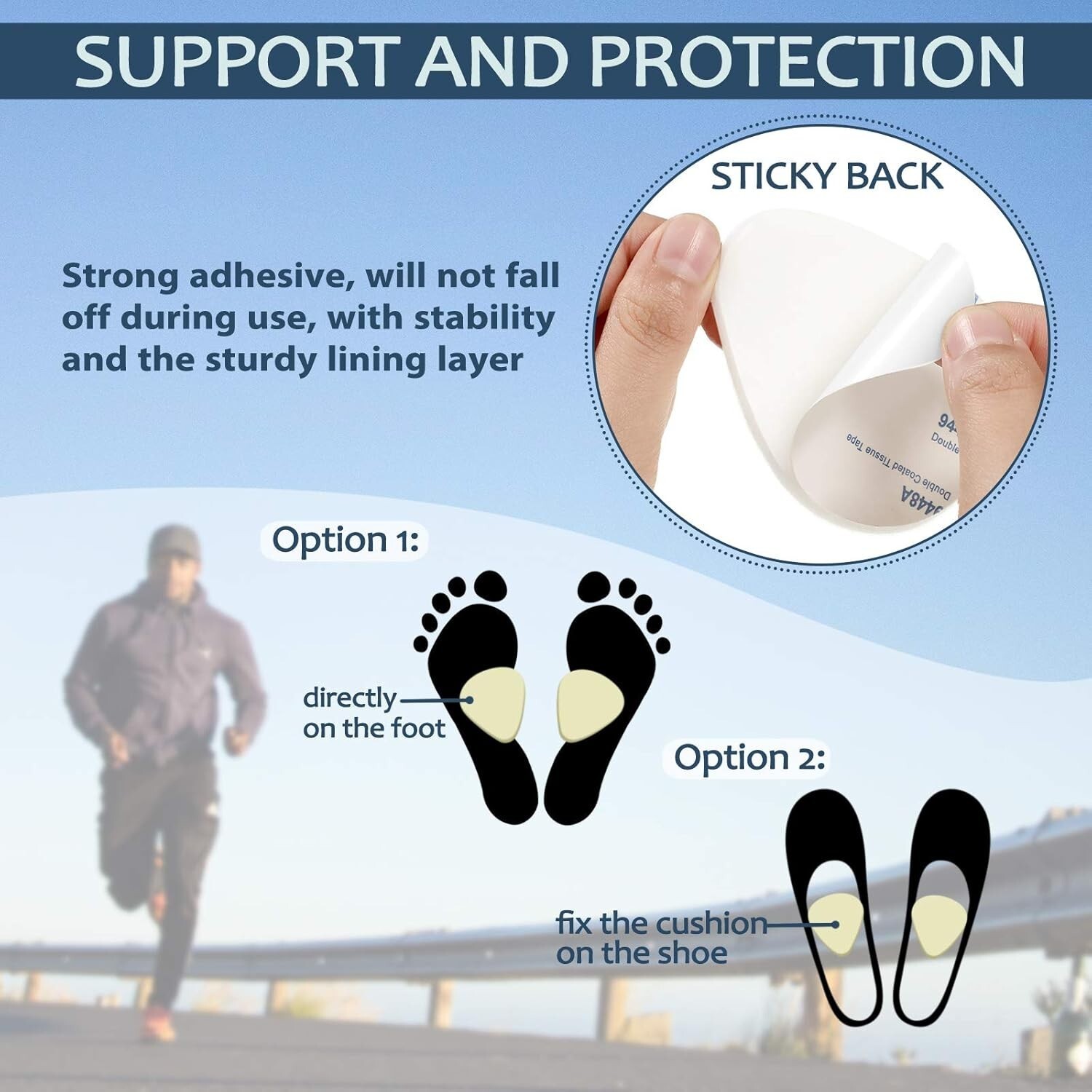 Equipped with a strong adhesive, these pads stay securely in place during daily activities, offering reliable support without slipping. Easy to use, simply fix them on your insole or directly on your foot before putting on shoes for immediate pain relief and pressure reduction.