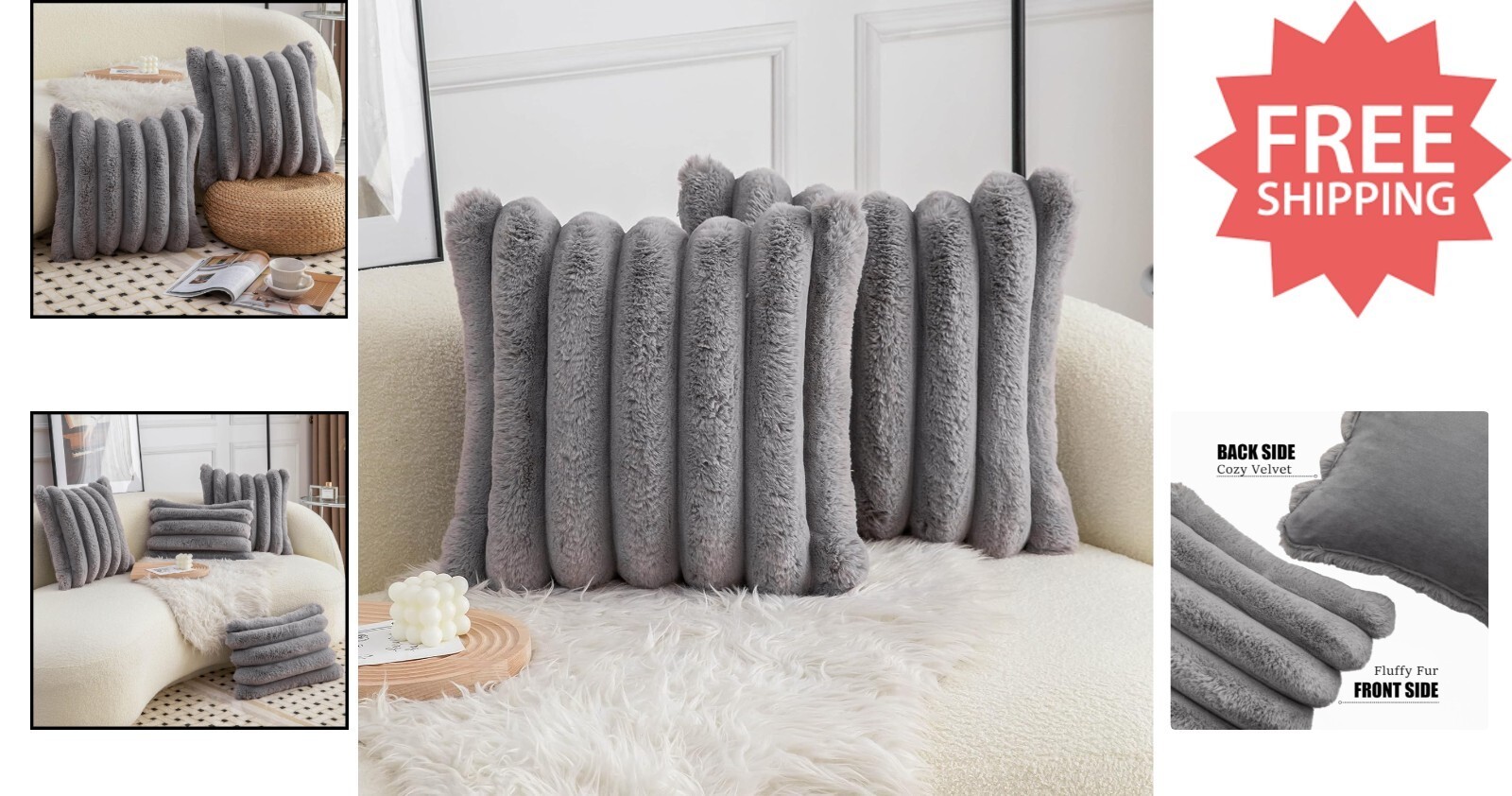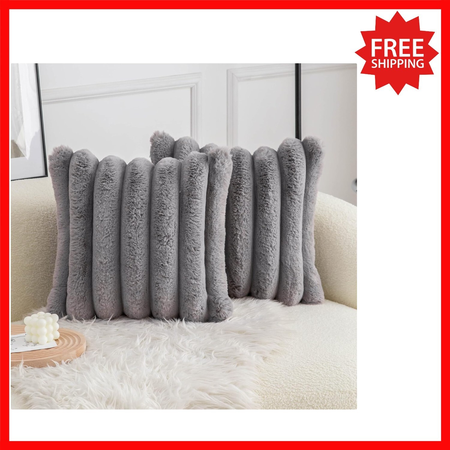 Set of 2 Grey Faux Fur 18x18 Decorative and 50 similar items
