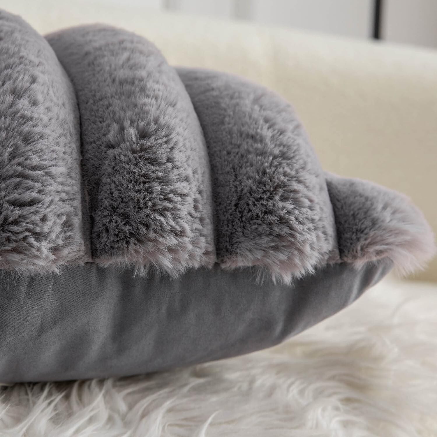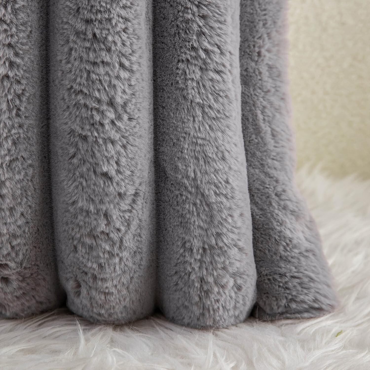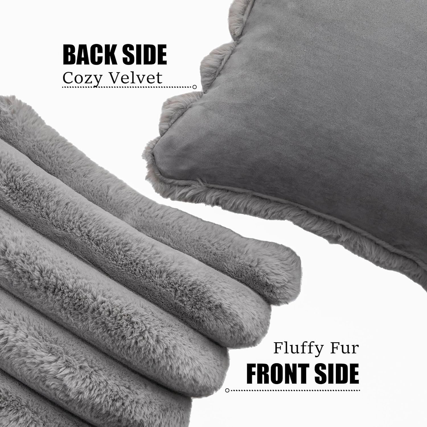 Set of 2 Grey Faux Fur 18x18 Decorative Pillow Covers - Luxurious Velvet Back