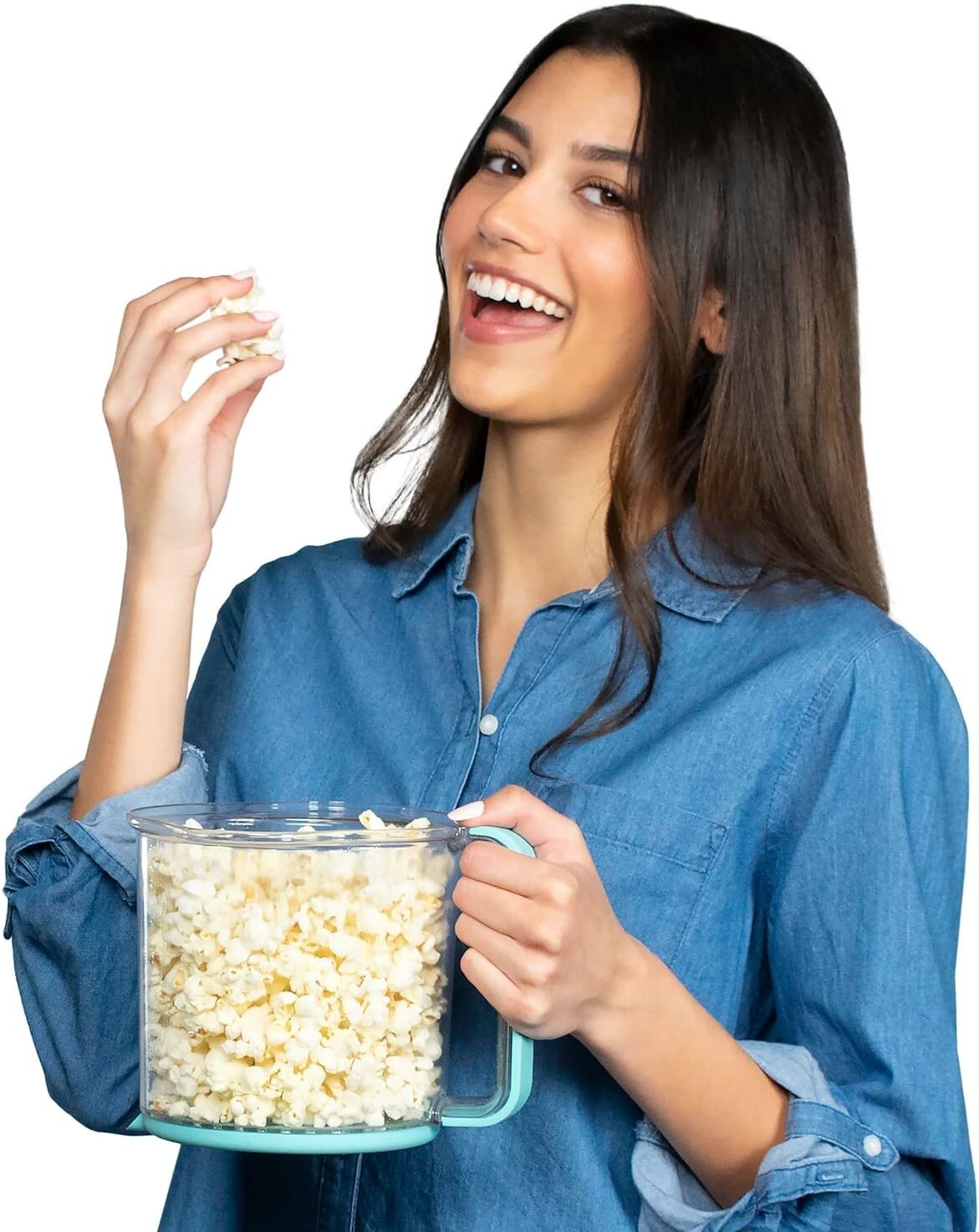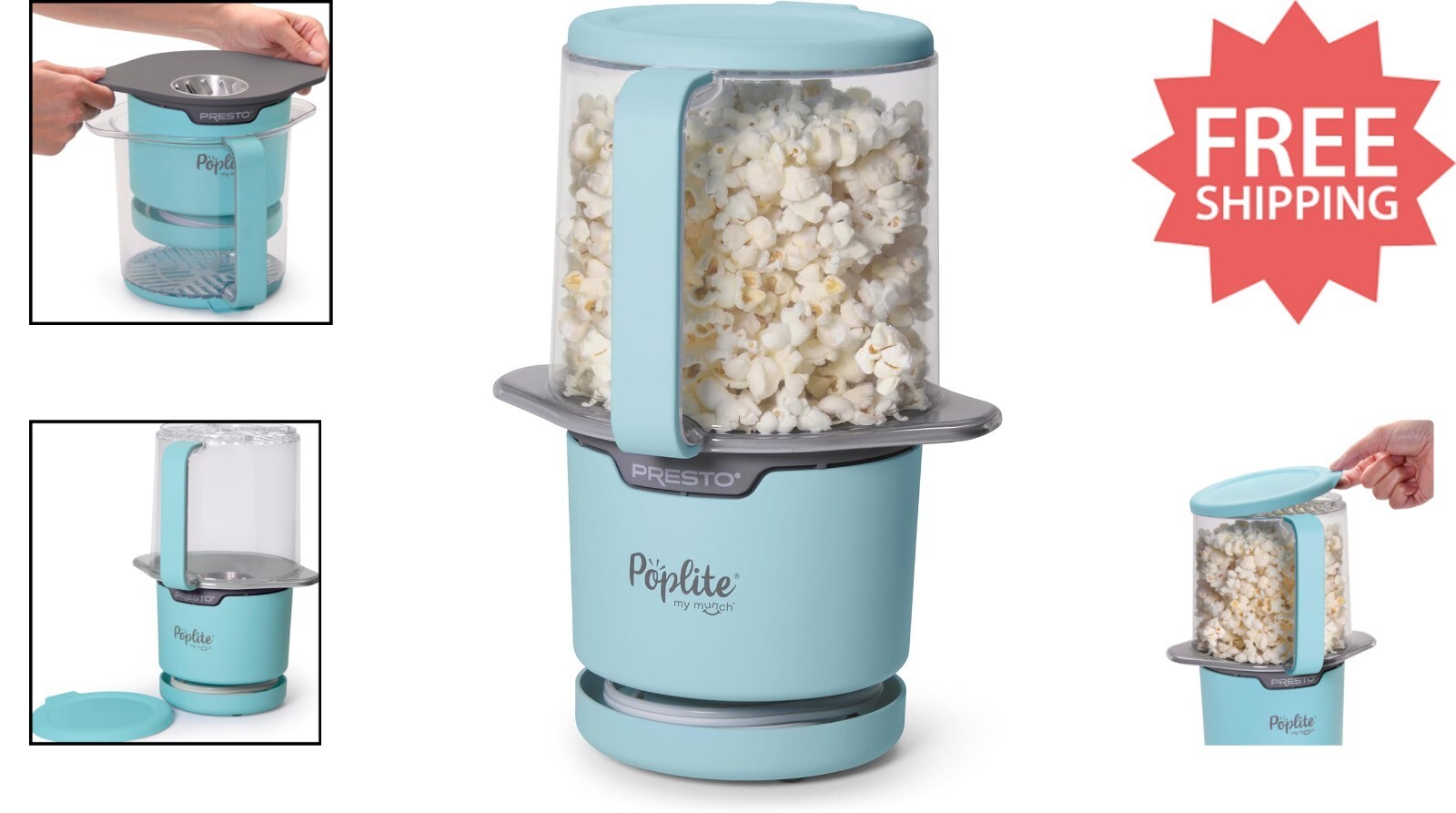 Enjoy a healthier snack with the PopLite my munch? hot air popcorn popper. Popping up to 8 cups of gourmet popcorn in just 2 minutes, it uses hot air instead of oil to deliver a low-fat, heart-healthy treat. The vented cover ensures crispy, delicious popcorn, while the cover doubles as a convenient serving bowl with a handle. Its compact design, featuring a built-in cord wrap, makes storage easy and clutter-free. Cleanup is a breeze?simply wipe the base and cover clean after use.