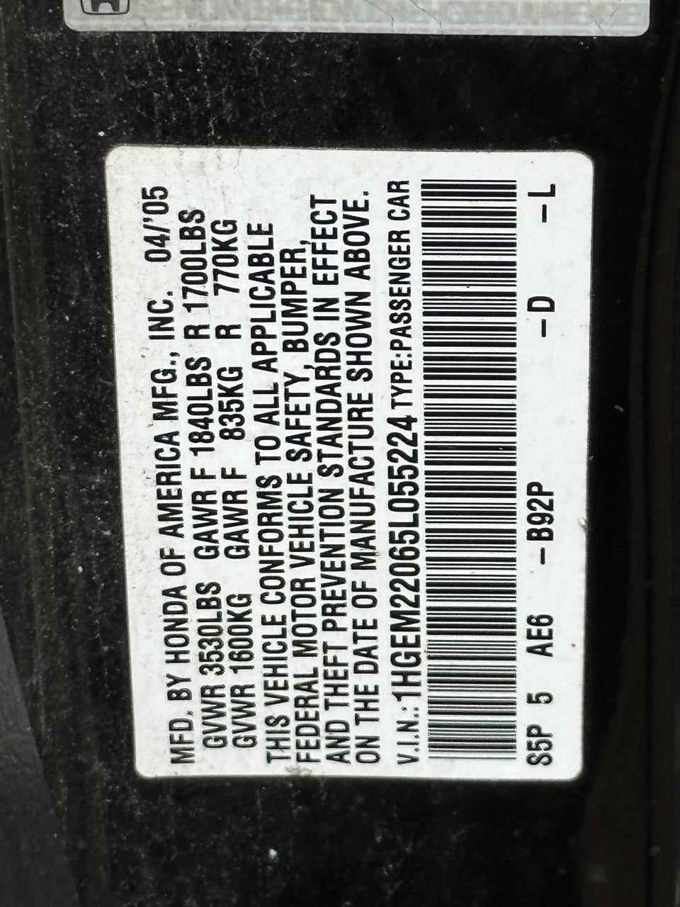 1HGEM22065L055224 |