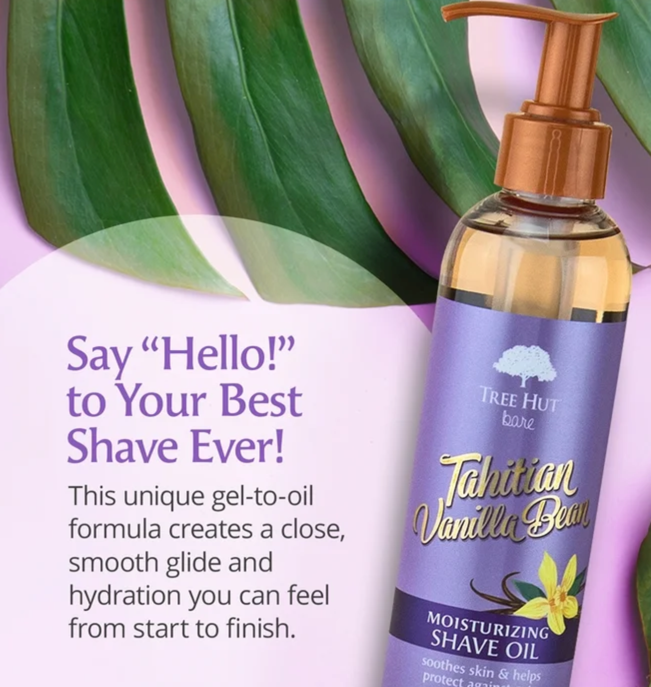 Say "goodbye" to razor burn, stubble, ingrown hairs, nicks, and bumps and say "hello" to beautiful skin with Tree Hut Tahitian Vanilla Bean Shave Oil! Achieve your closest shave ever with Tree Hut Bare Moisturizing Shave Oil in the warm, tropical scent of Tahitian Vanilla Bean. Inspired by Tahitian sunsets, this shave oil features key notes of toasted vanilla, gardenia, and suede.