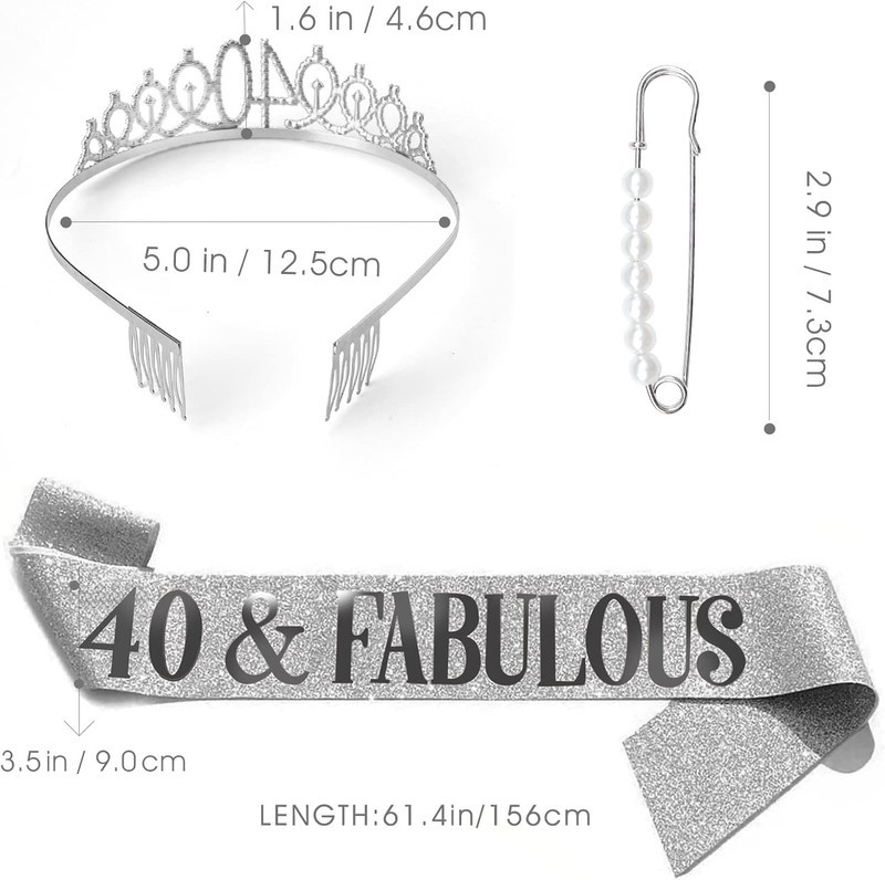 40th birthday sash and tiara set includes 1 piece 40 FABULOUS sash, and 1 piece rhinestone tiara, which is an exquisite gift for women 40th birthday!