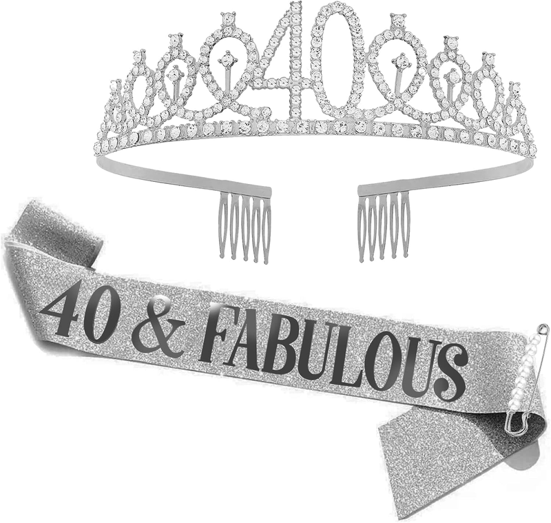 40Th Birthday Sash Rhinestone Tiara Set, 40Th Year Old Birthday Gifts Party Decorations for Women